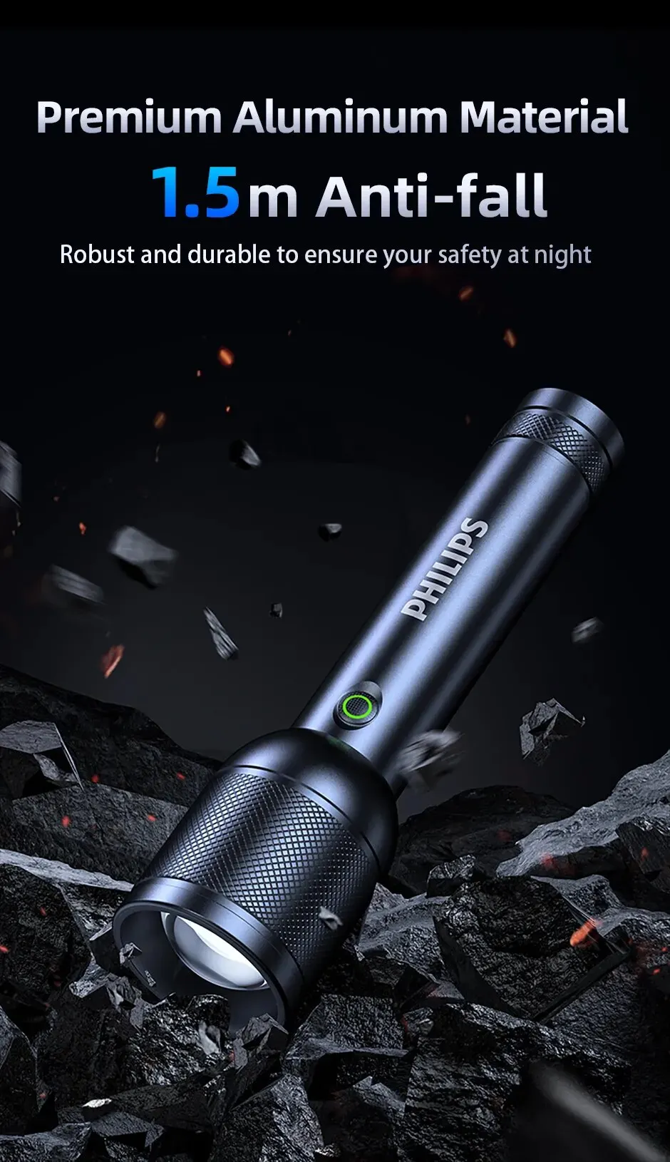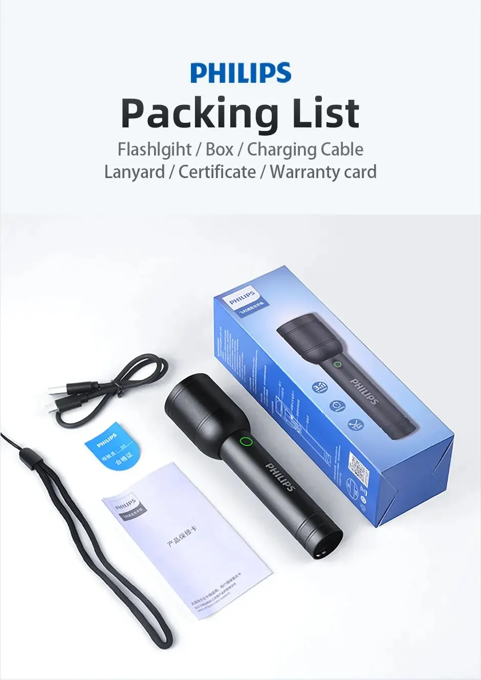 • Durable Design :The Philips flashlight boasts a durable design, built to withstand rough use and harsh conditions, ensuring long-lasting performance.