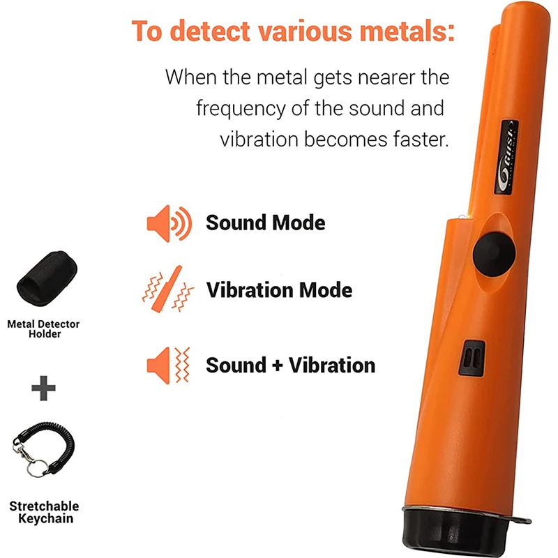 3, High Sensitivity–Pinpointer metal detector have three mode- Vibration Mode(Silent), Audio mode, vibration and audio mode. There are three sensitivity levels alert to the different distance between sensor and object.