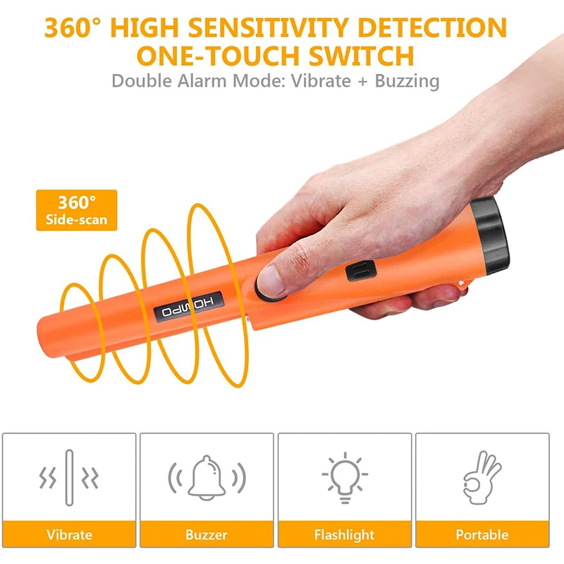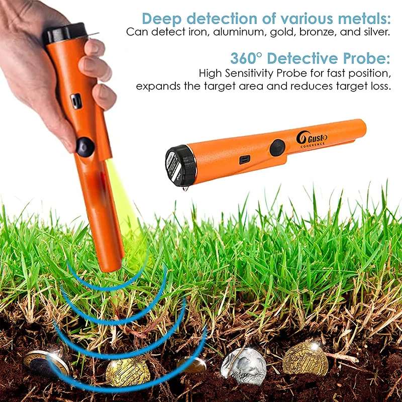 1,Easy to Use–inpointer metal detector just press the power on button. Led will light on. When the pin pointer get closer and closer to metal, buzzer sound will get louder and louder.