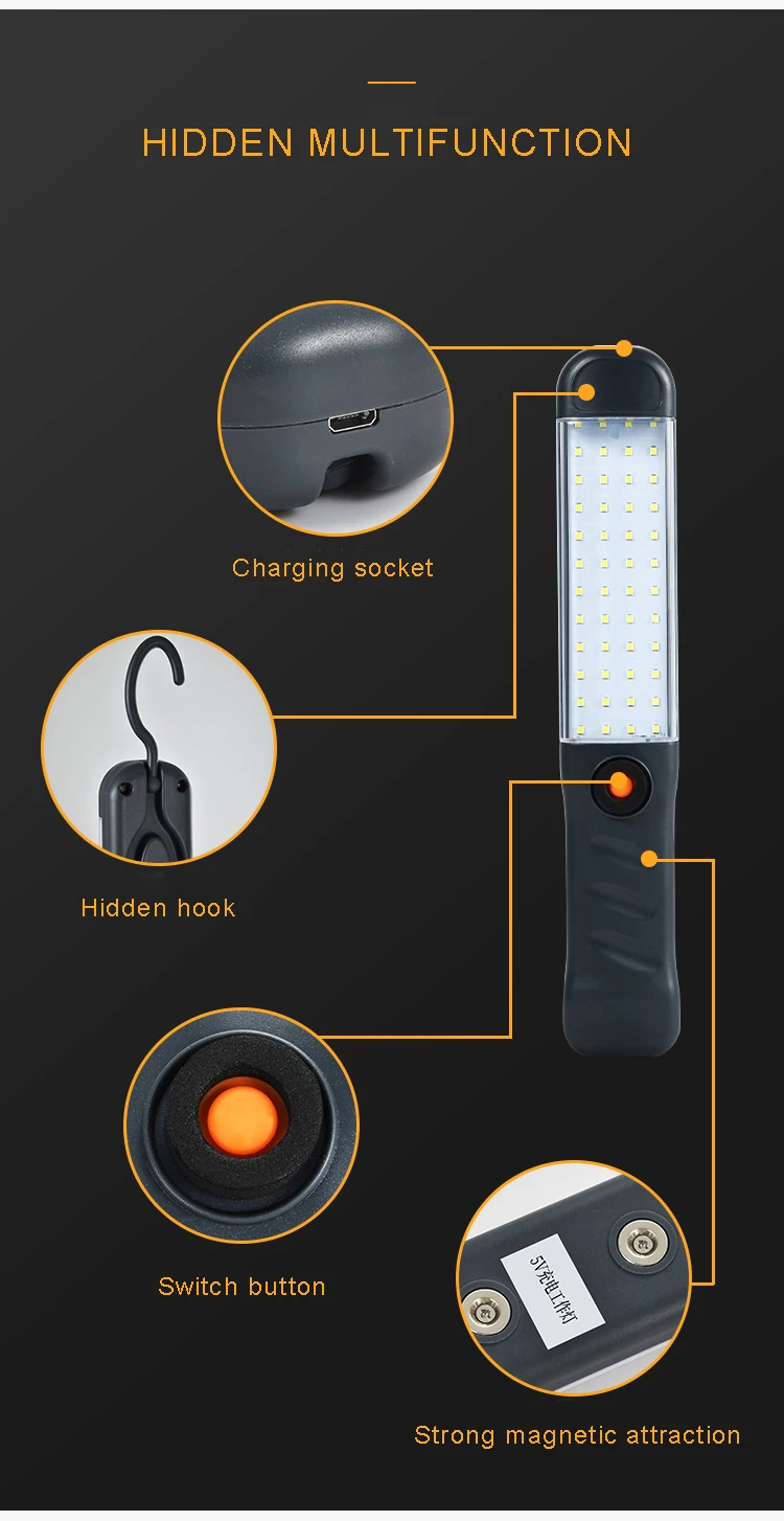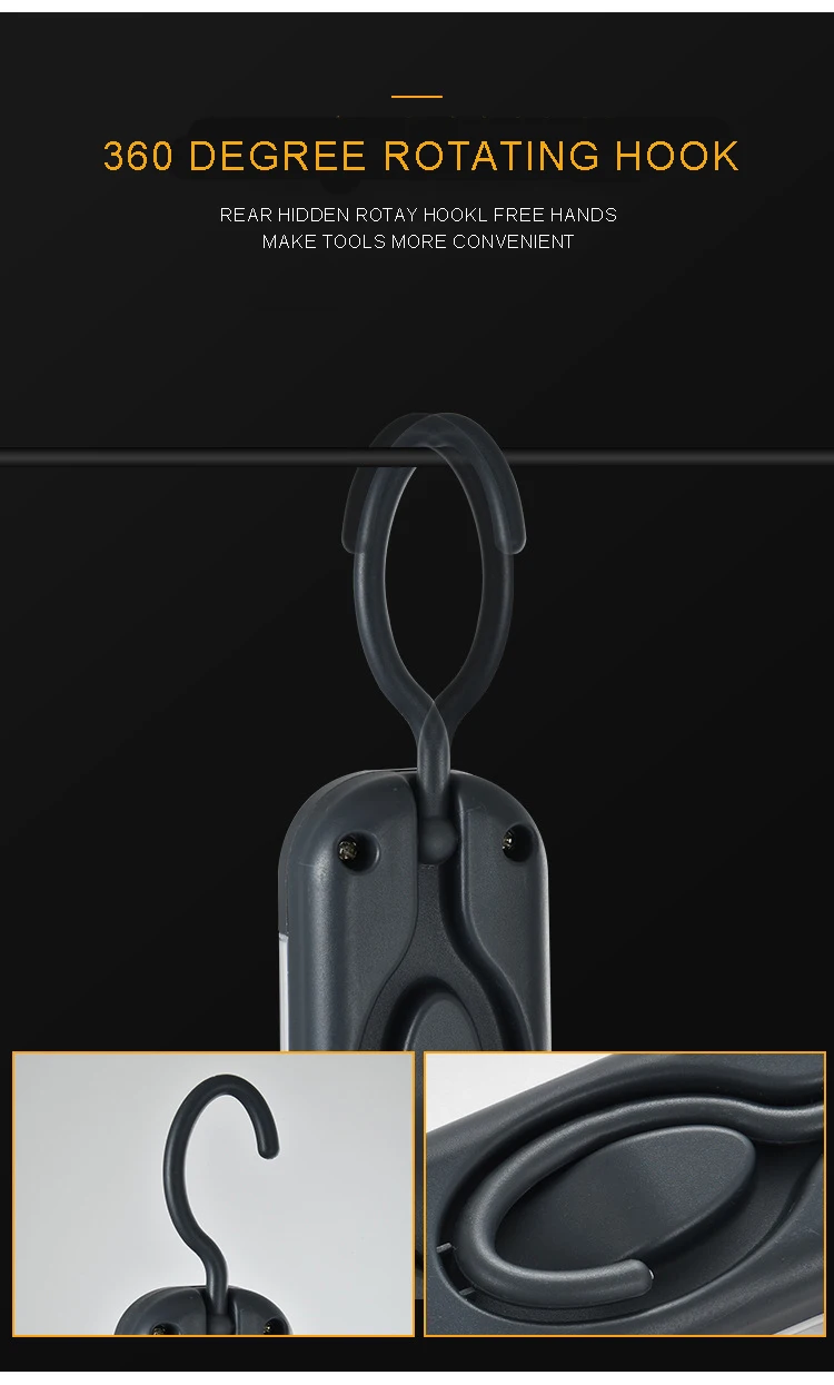 *3 functions in one portable light: LED temporary work light includes , adjustable rotating clamp and 360-degree rotating hook. The full-angle rotating suspension hook can be installed anywhere; built-in super magnets can be attached to metal surfaces such as the car body to provide temporary lighting