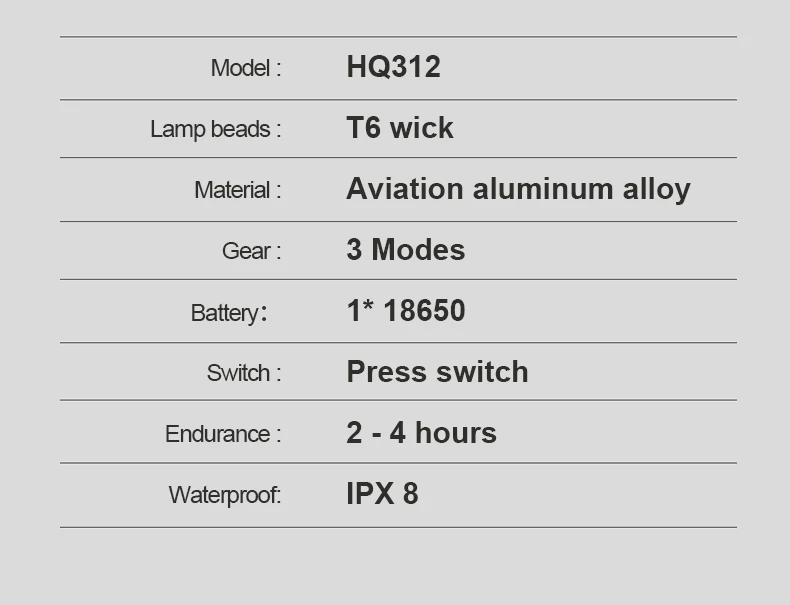 · Endurance: 2 – 4 hours (Depend on which light mode is used)
