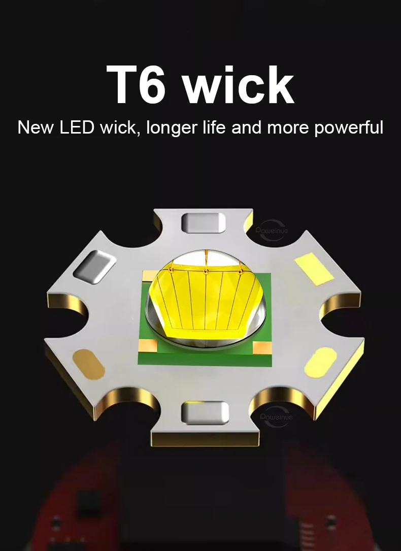 This flashlight uses T6 wick which can provide powerful lighting effect.