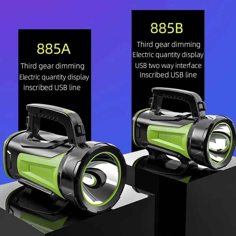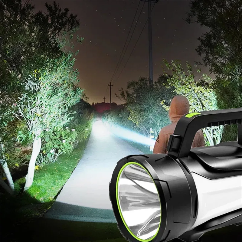 Powerful Rechargeable Searchlight LED Flashlight IPX6 Waterproof With Tail Light Bright Handle Spotlight For Camping Searching