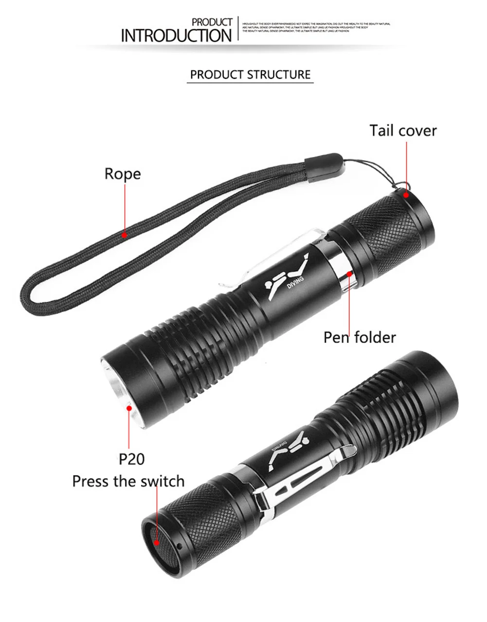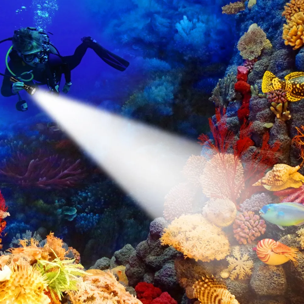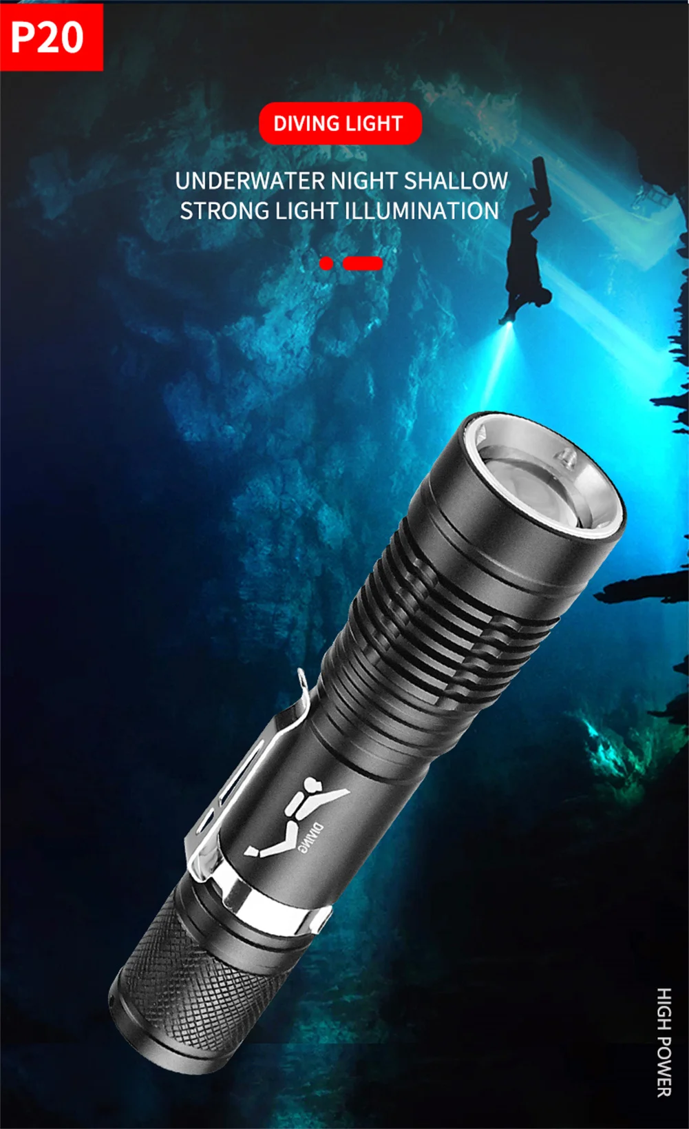 Professional Diving Flashlight Lamp Tools Powerful Aluminum Alloy LED Torch Waterproof Rating Underwater Electric Torches 18650