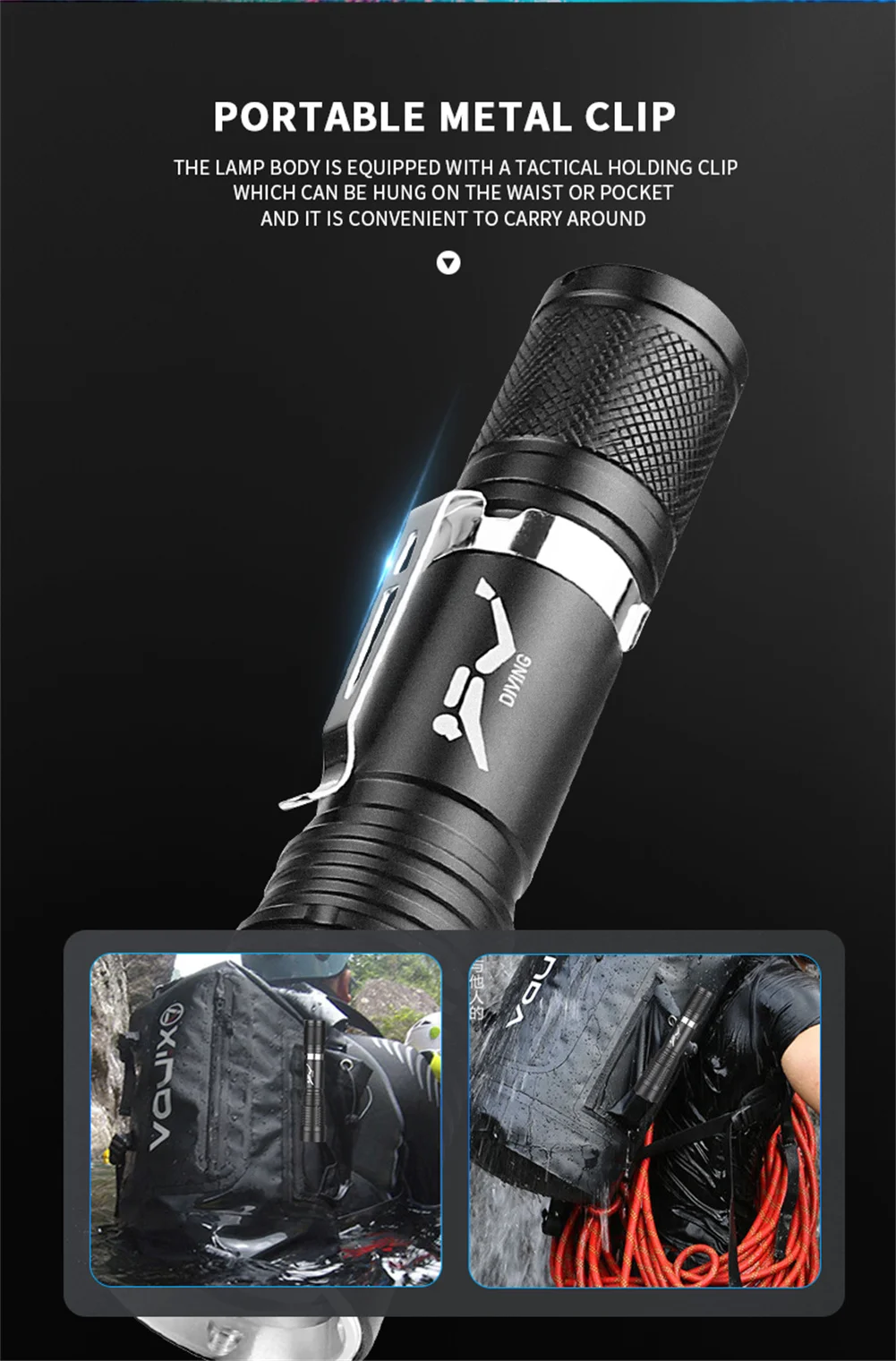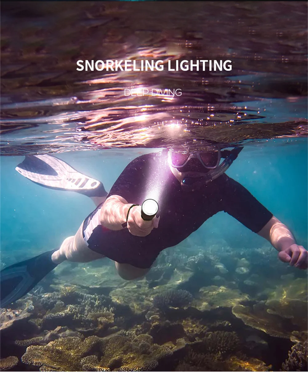 This flashlight has an IPX8 professional level of waterproofing, making it perfect for use in wet environments like snorkeling or diving. You can use it without worrying about the risk of seawater corrosion or damage to the flashlight.