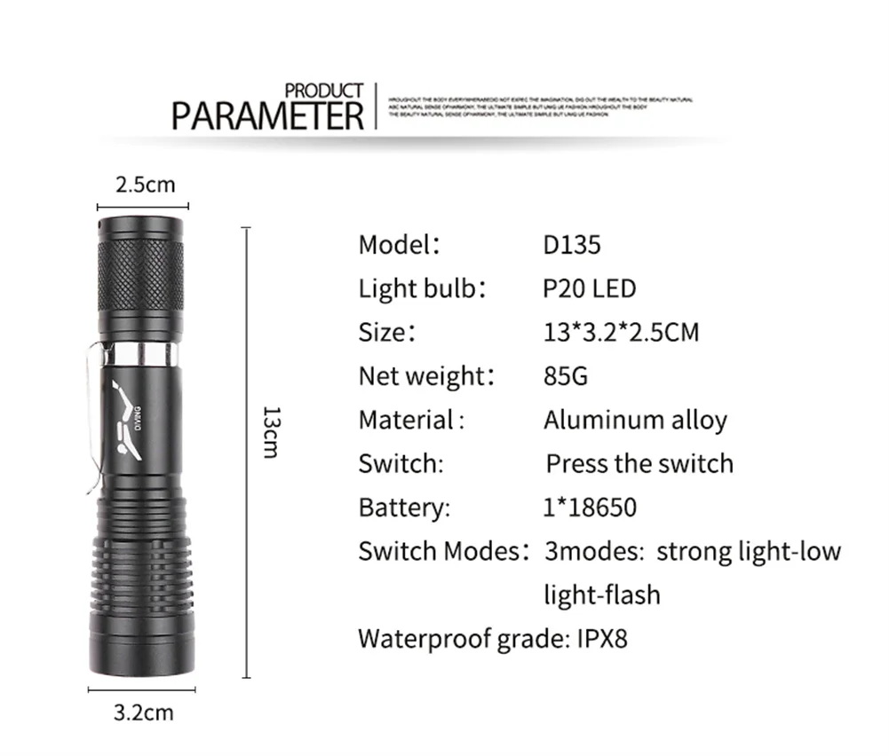 This flashlight is made of special aluminum alloy material, which makes it both durable and lightweight. You can carry it around without feeling weighed down.