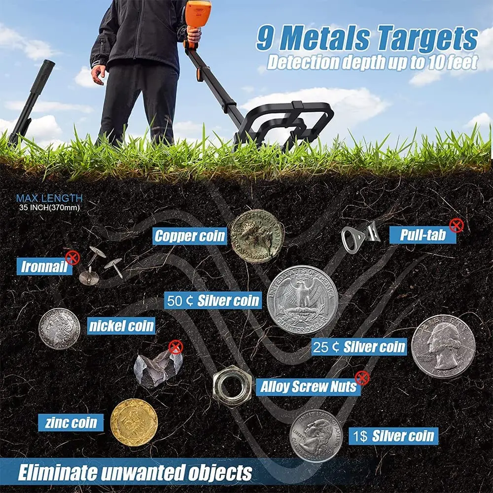 · 【5 Strong Modes & 9 Upgraded Metals】With 5 powerful detection modes, including all-metal, DISC, NOTCH, PP, memory mode, you can adjust the mode at will according to the detection needs, easily identify the type of metal you are detecting. 9 metal detection will make your detection objects more comprehensive and accurate. Metal detector features will undoubtedly bring more fun to gold mining enthusiasts. (The corresponding values of 9 kinds of metals are for reference only)