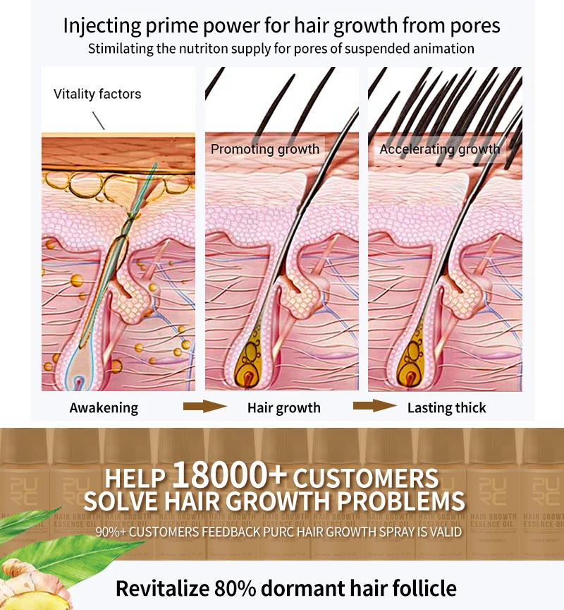 Step3: Spray Hair Growth Spray to the root of hair evenly, Two times a day(morning and evening), spray 1ml in one time, (spray 5-6 times) Increase or reduce the dosage according to the specific condition. If possible, massage for several minutues.