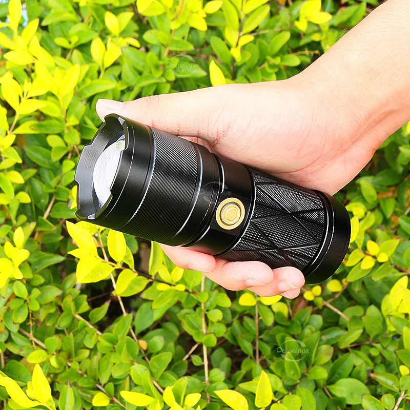 White laser long shot Recharge Flashlight USB High Power LED Flashlights 12000mAh Powerful Torch Zoom Tactical Lantern Camping Hand Lamp