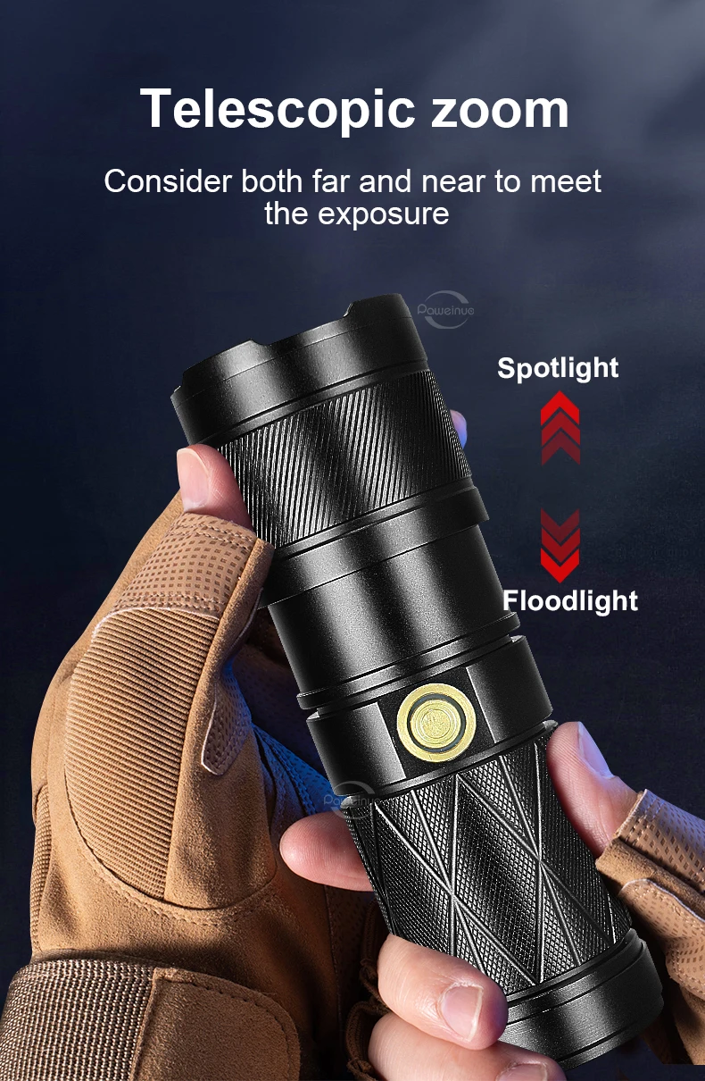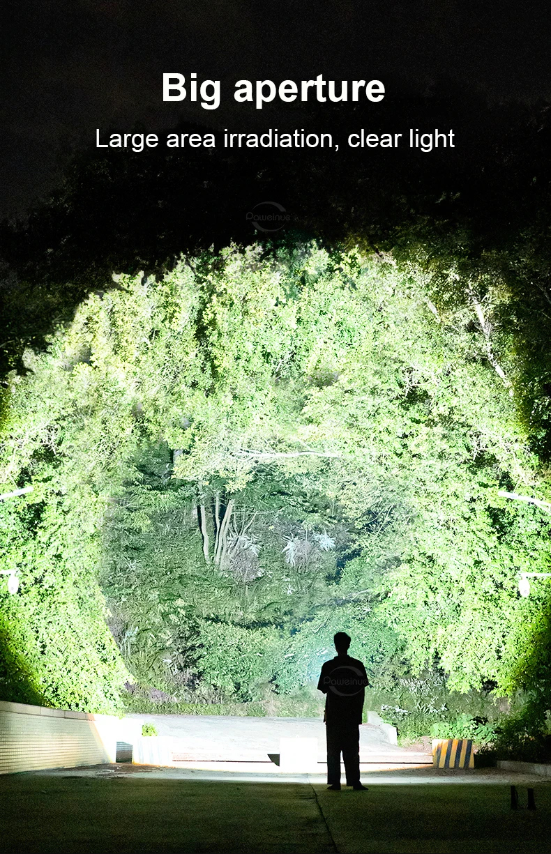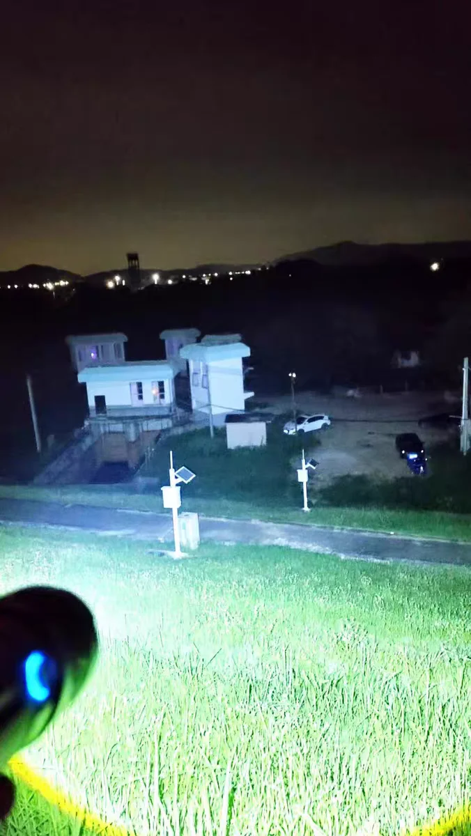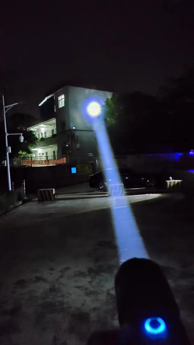1. The 2022 upgraded flashlight adopts the latest focusing technology. The long shot LED high-brightness wick passes through the condenser lens to easily illuminate the ultra-long distance of 1500M. Light beams do not attenuate brightness due to distance.