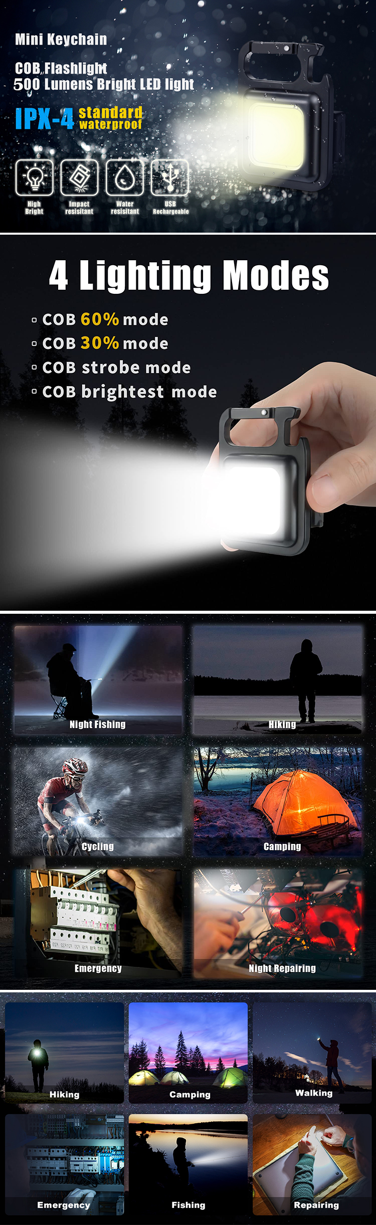 Be the first to review “Recharge Strong Magnet Cob Light Mini Portable Key Rings Camping Lantern Keychain Flashlights with Folding Bracket Bottle Opener”
