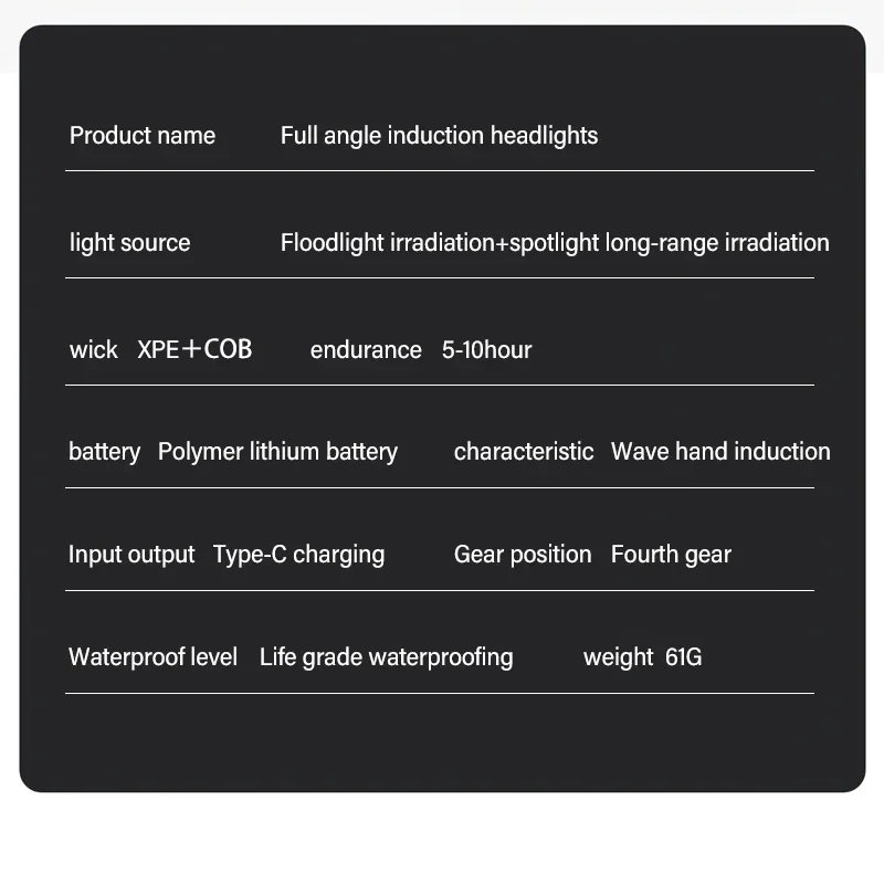 Lighting mode: 4 modes (LED strong light -LED low light -COB strong light – long press flash)
