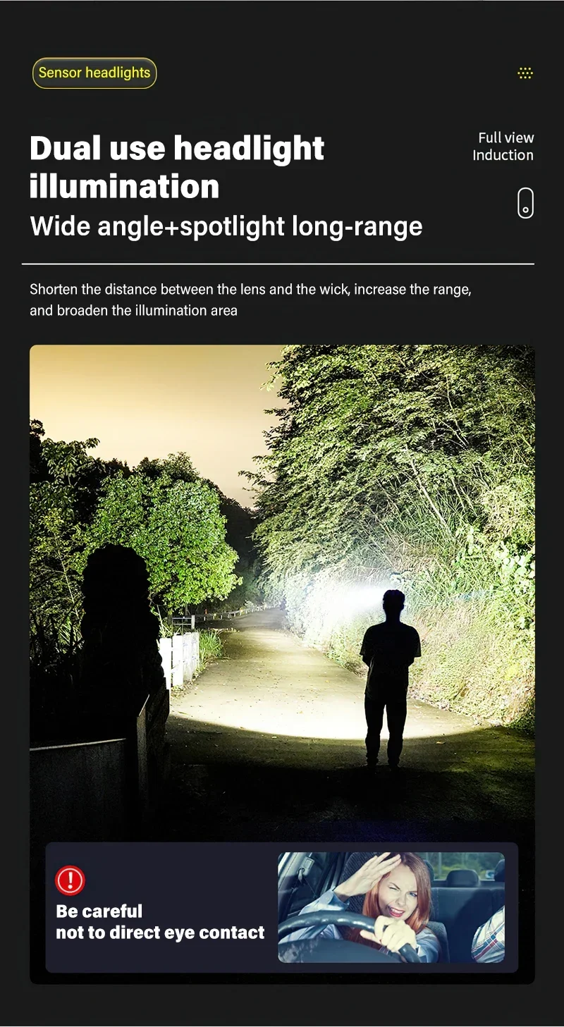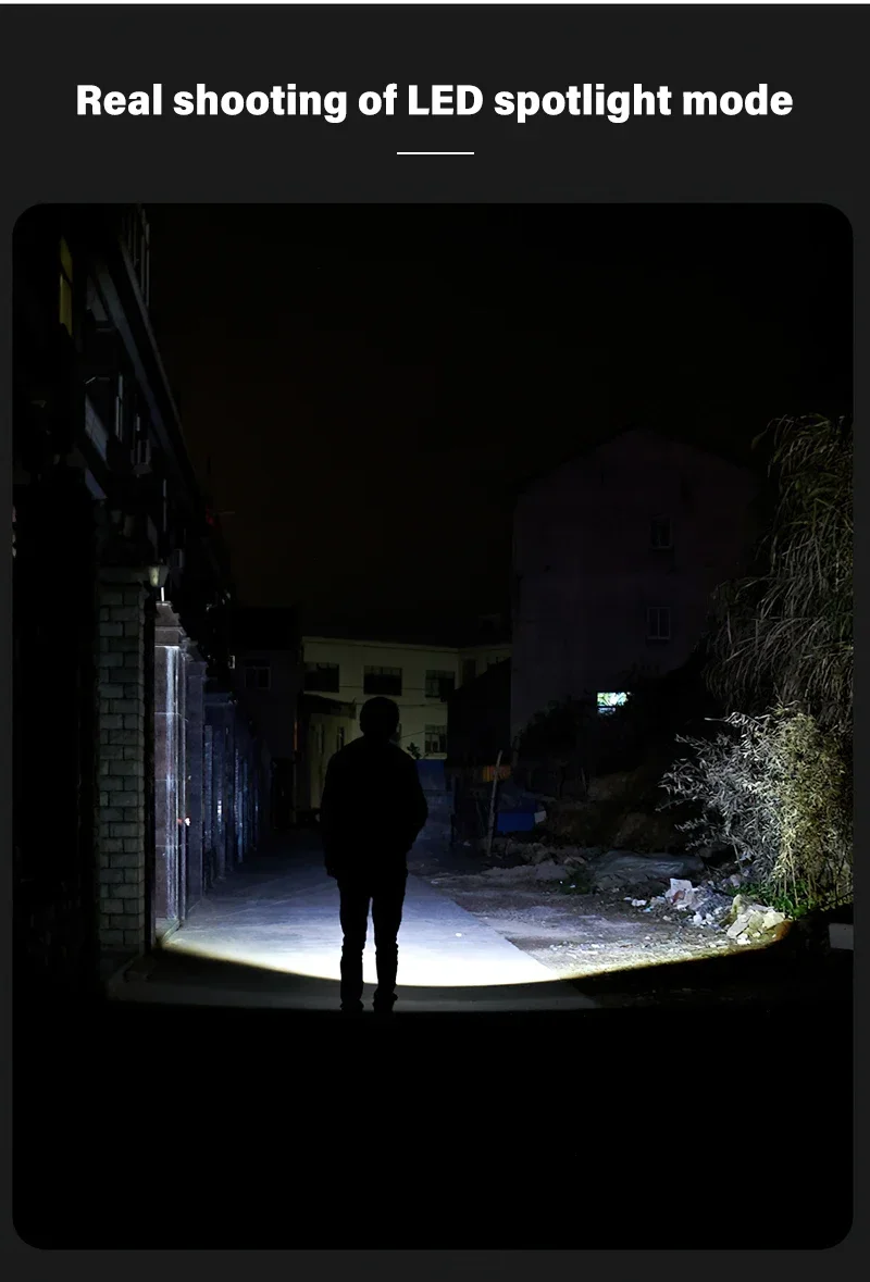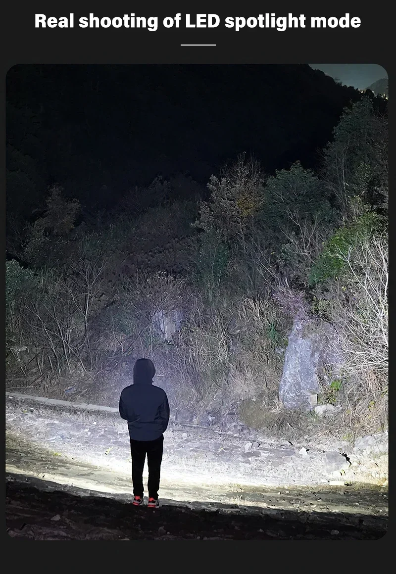 Lighting mode: 4 modes (LED strong light -LED low light -COB strong light – long press flash)