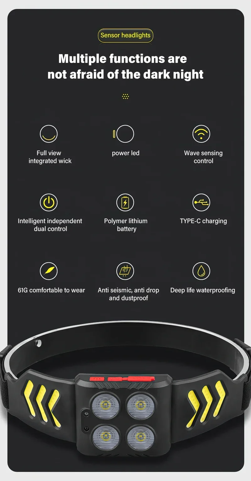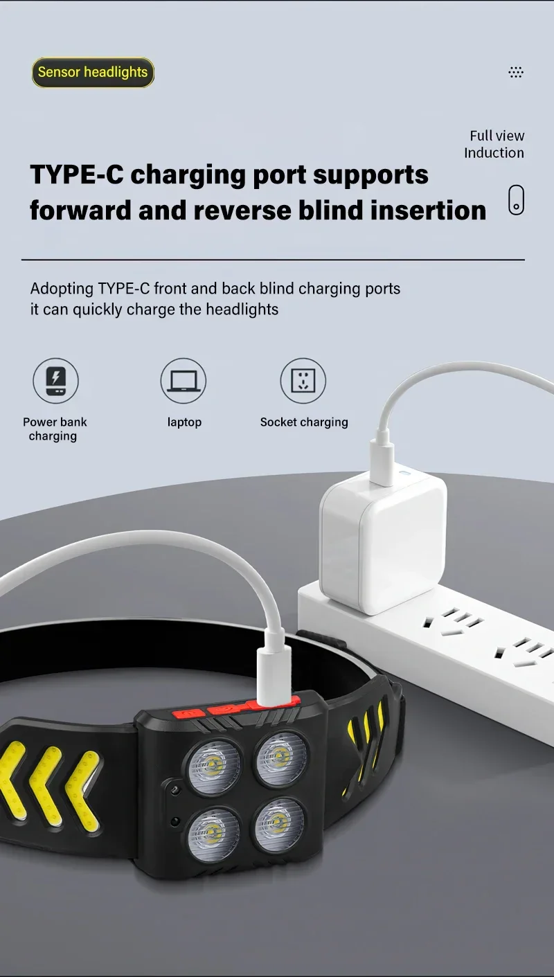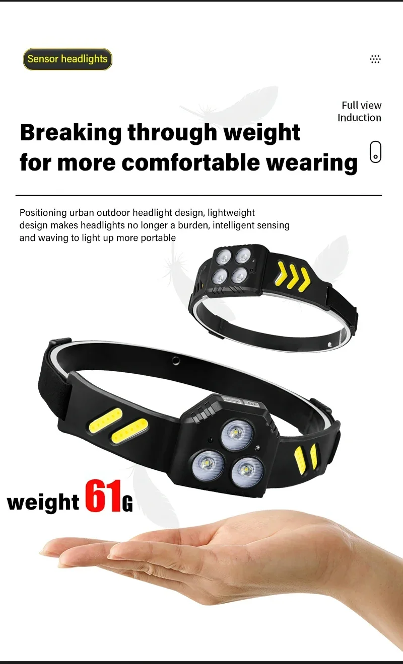 Lighting mode: 4 modes (LED strong light -LED low light -COB strong light – long press flash)