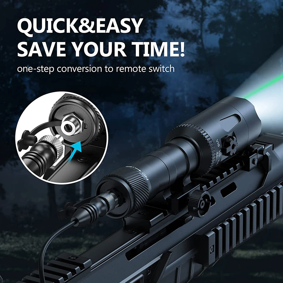 4. The tactical gun flashlight delivers 1000 Lumens 332m distance beam and runs 2 hours max under combo mode, powered by 18650 Batteries. The long gun flashlight can be used for home/personal defense, rescue, outdoors like hunting, hiking.