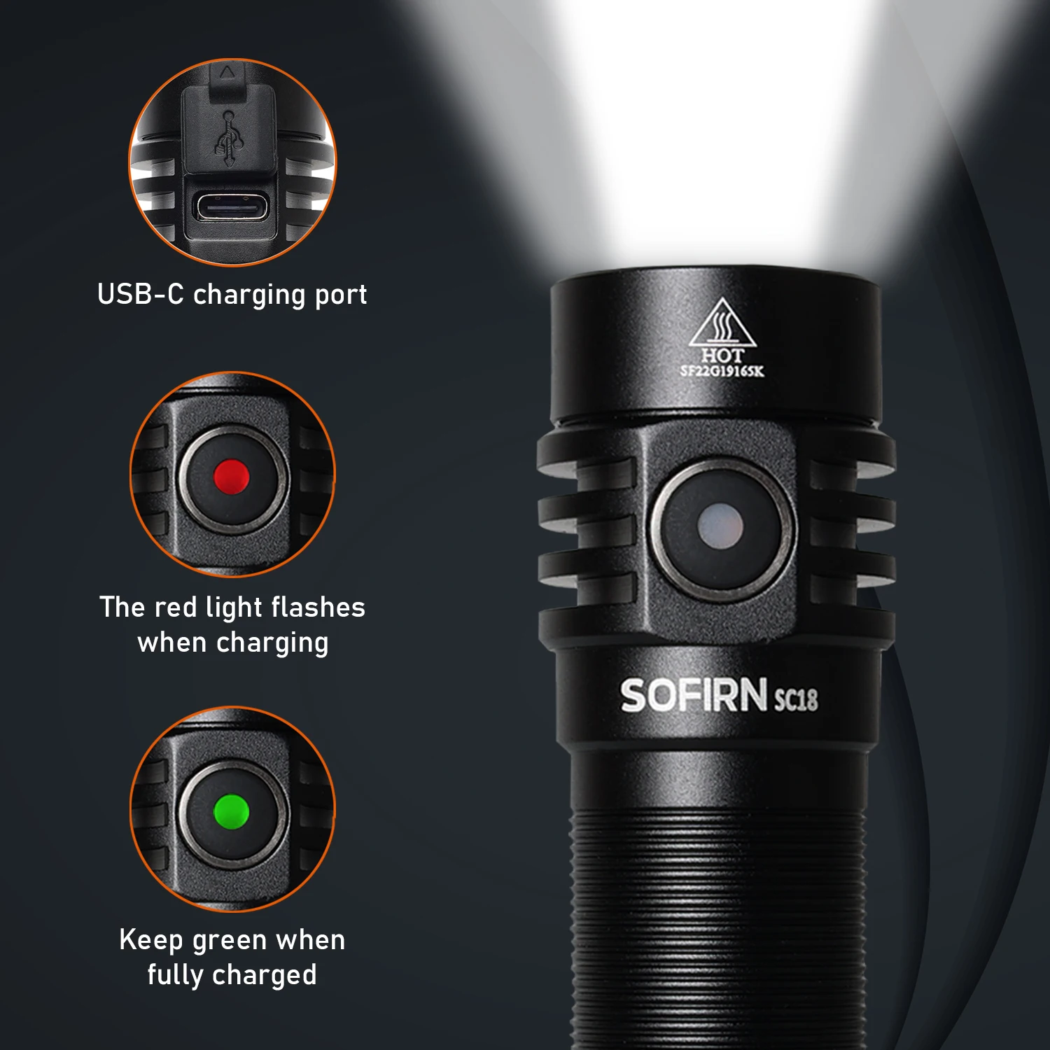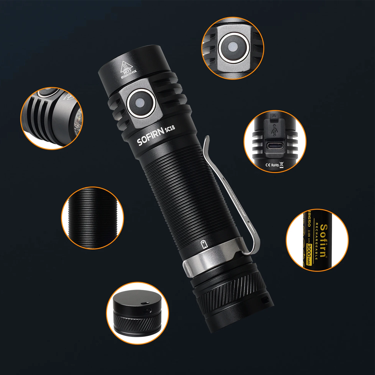 SC18 1800lm EDC Flashlight SST40 LED 18650 Torch with TIR Optics Lens Portable Lantern