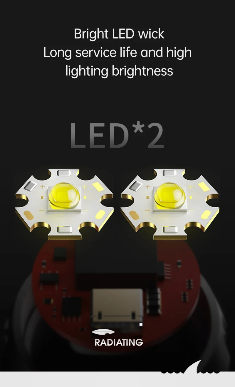 Upgraded high-brightness dual LED wicks, brightness comparable to car headlights