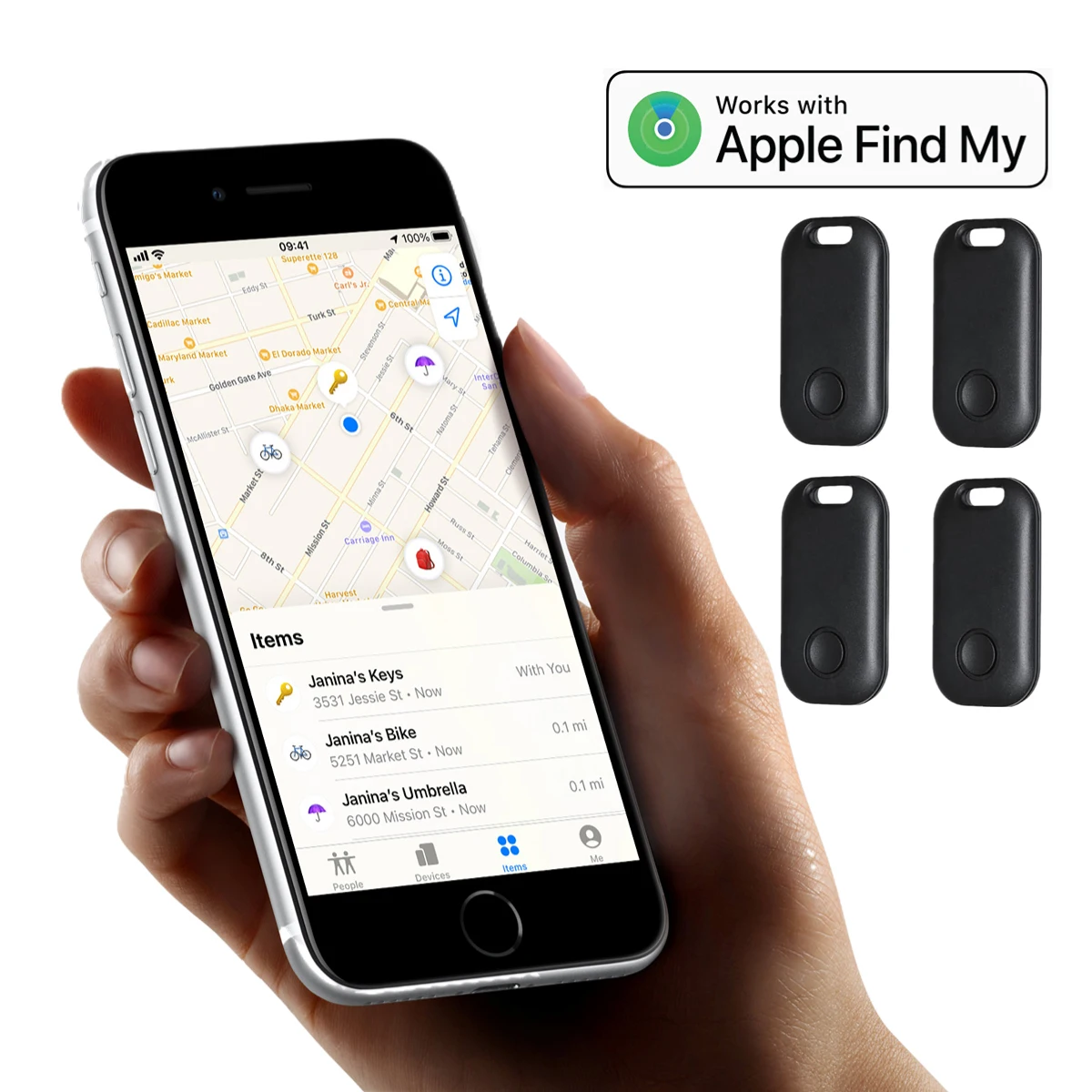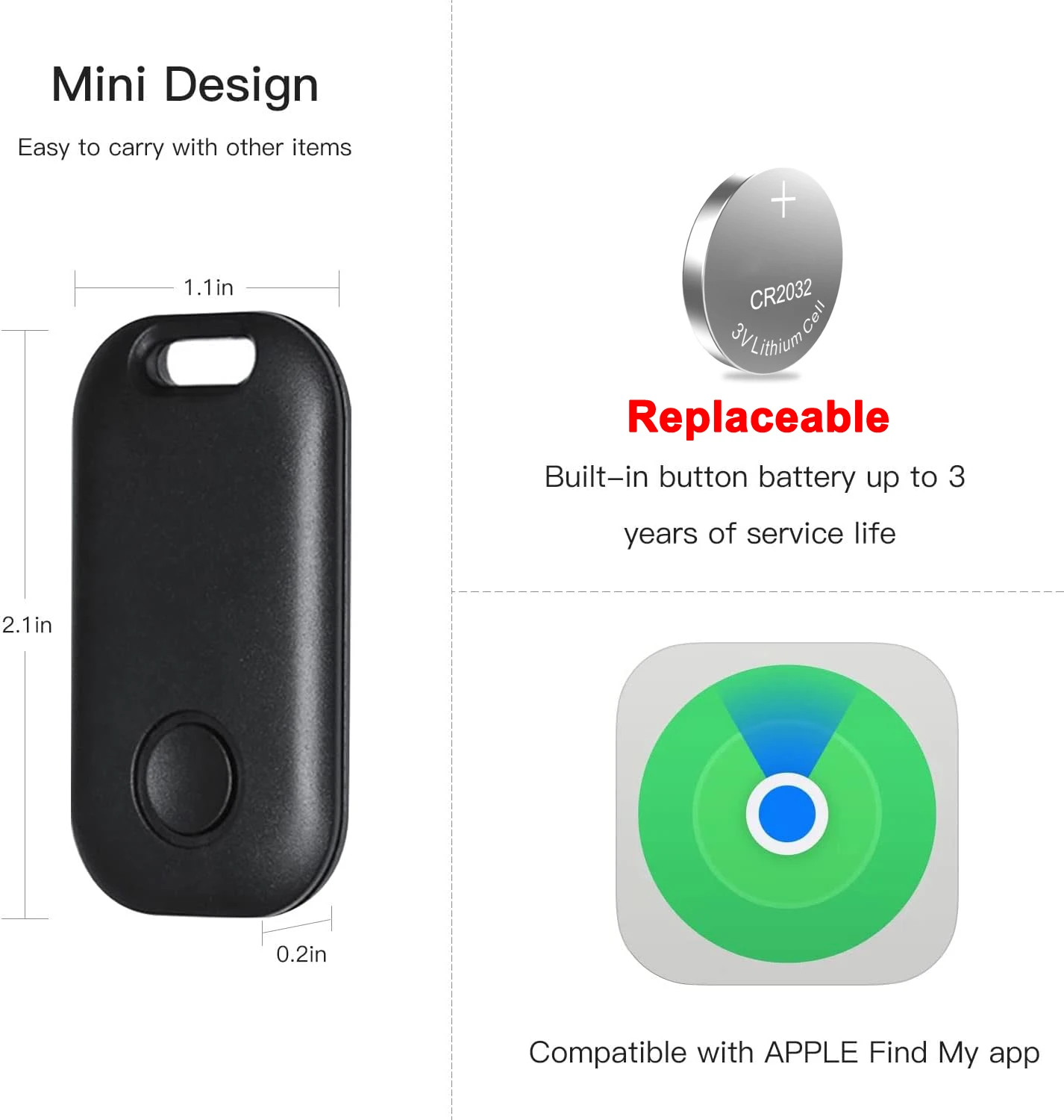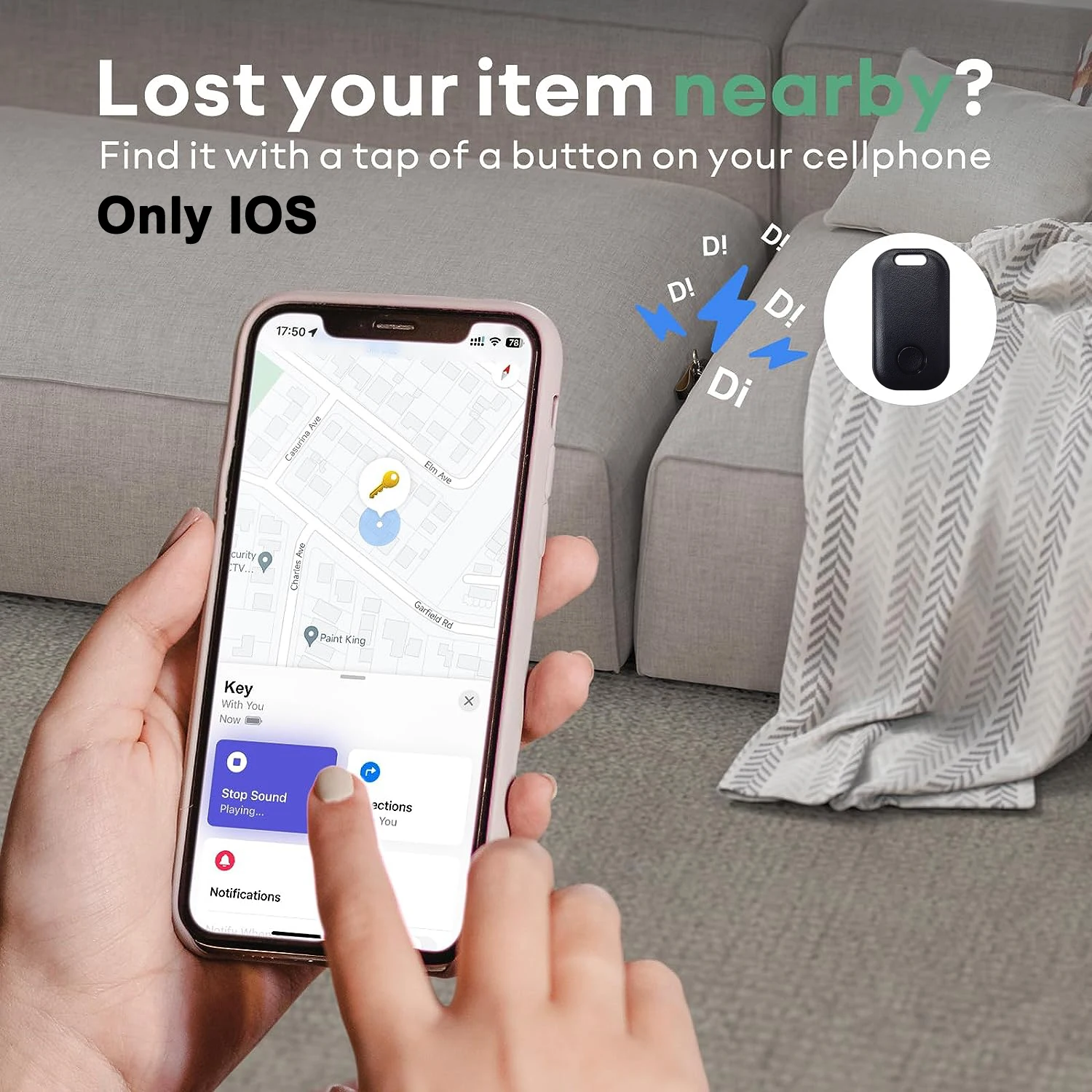 When connected, open the Iphone or ipad that comes with the Apple application "Find", click the "Play Sound" button, the device will emit a "reminder" sound, and you can quickly find the item according to the sound prompt.