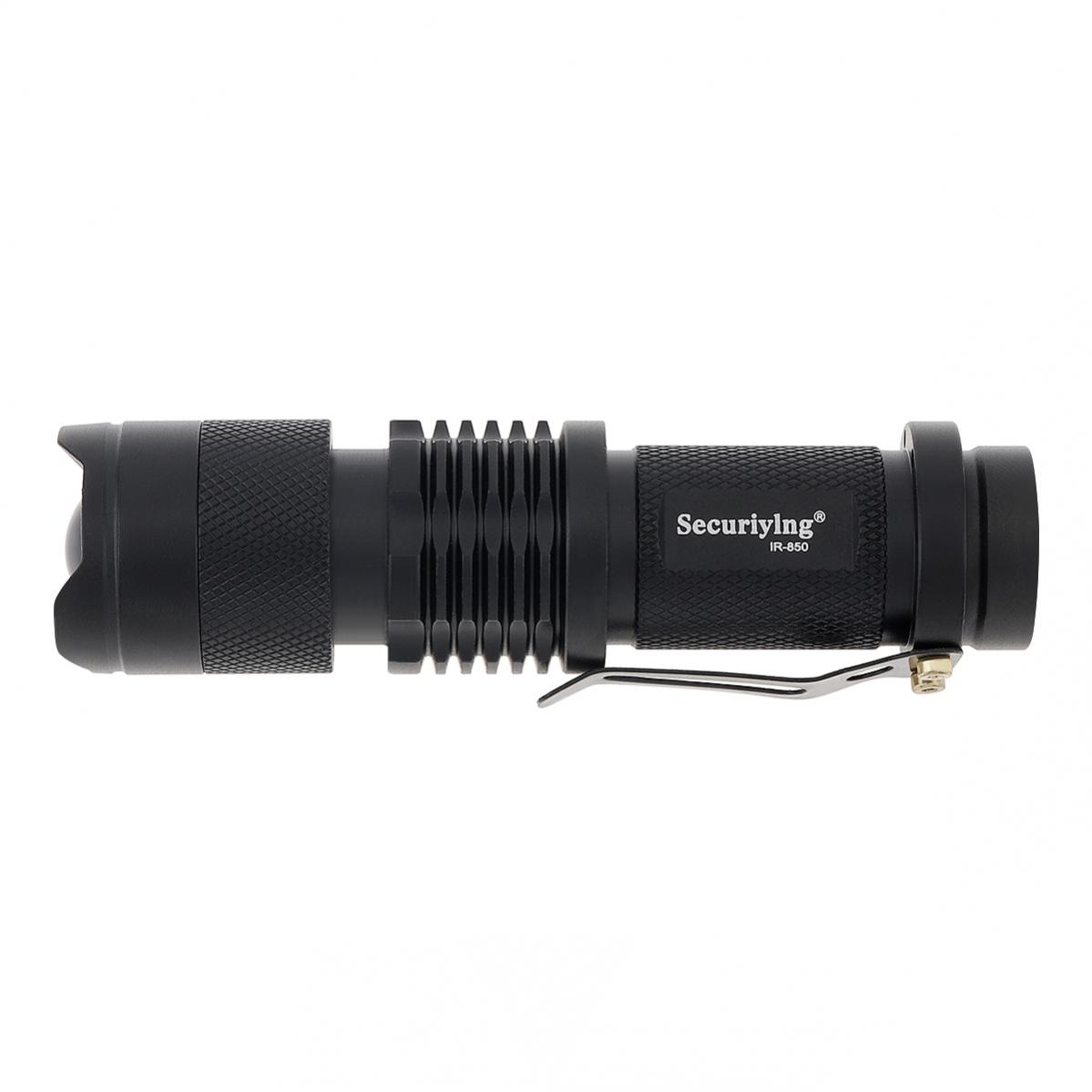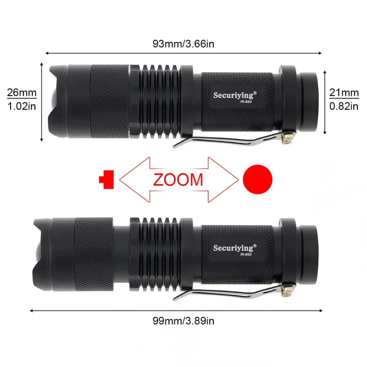– 850nm wavelength flashlight is visible to human eyes at all time, very little light. The LED chip from this flashlight turns red by naked eyes when the light on, however the light beam need to be detected by night vision scopes or non IR filter cameras.