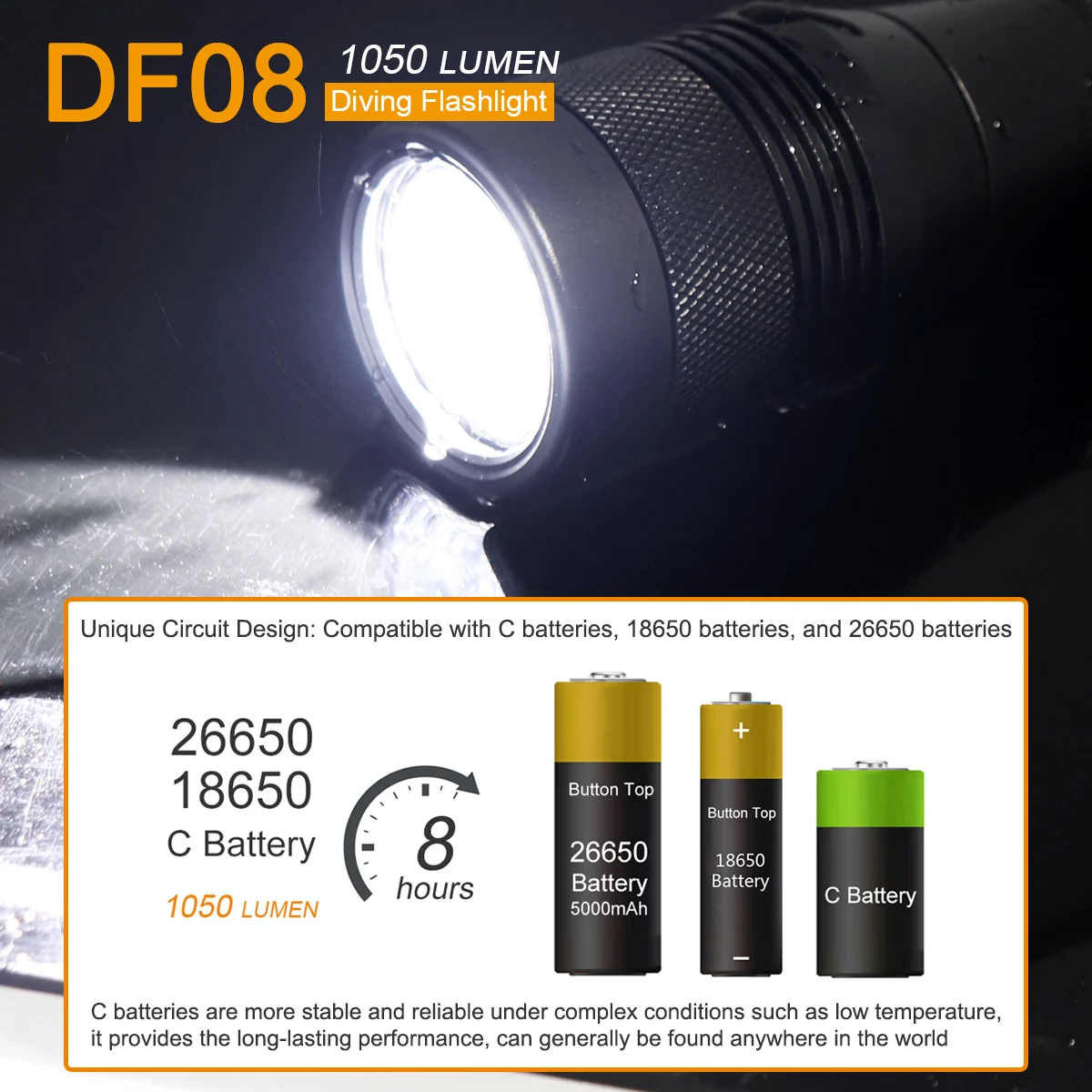 – The flashlight maintains a stable current when you use it, and it is not easy to flicker, giving you a greater sense of security in diving.