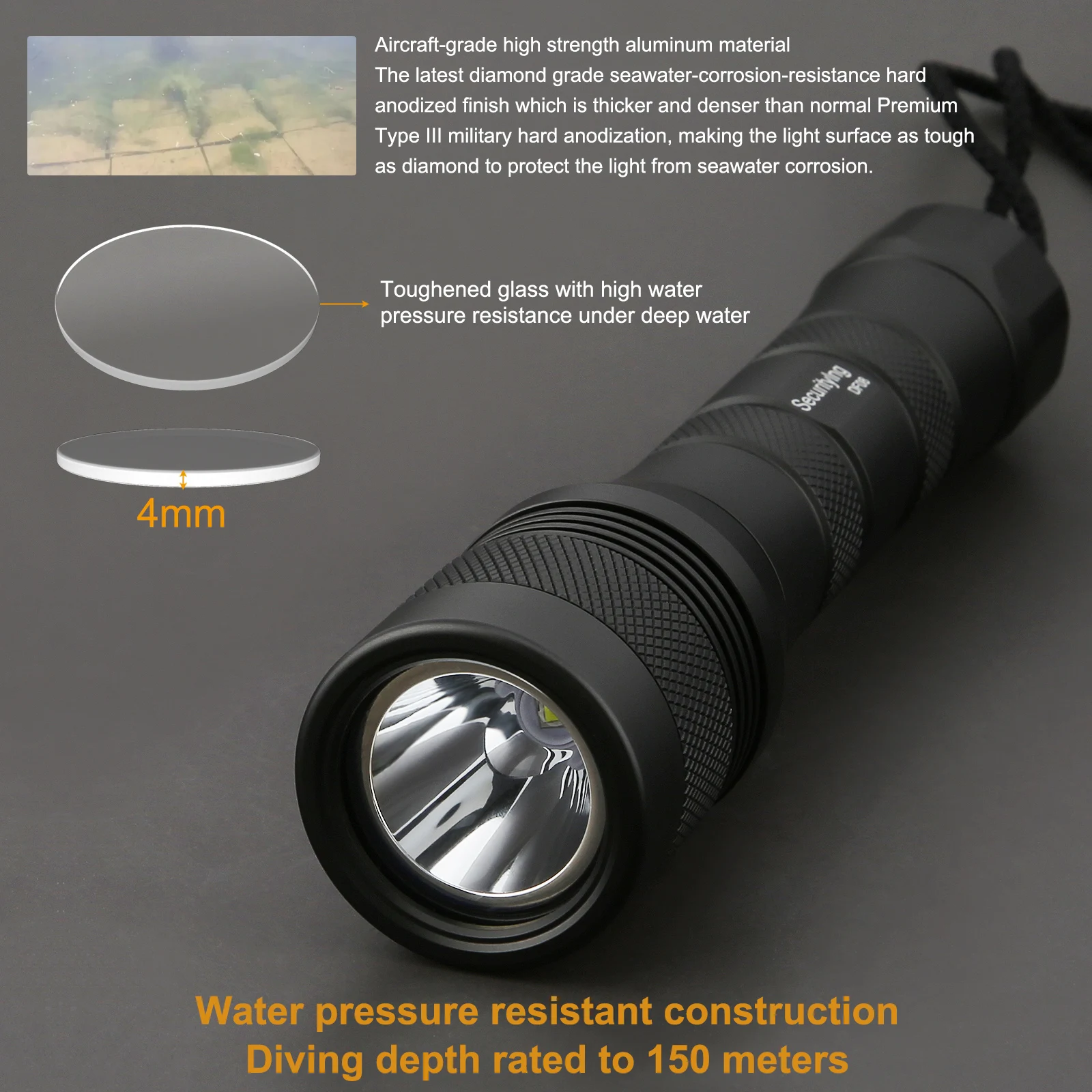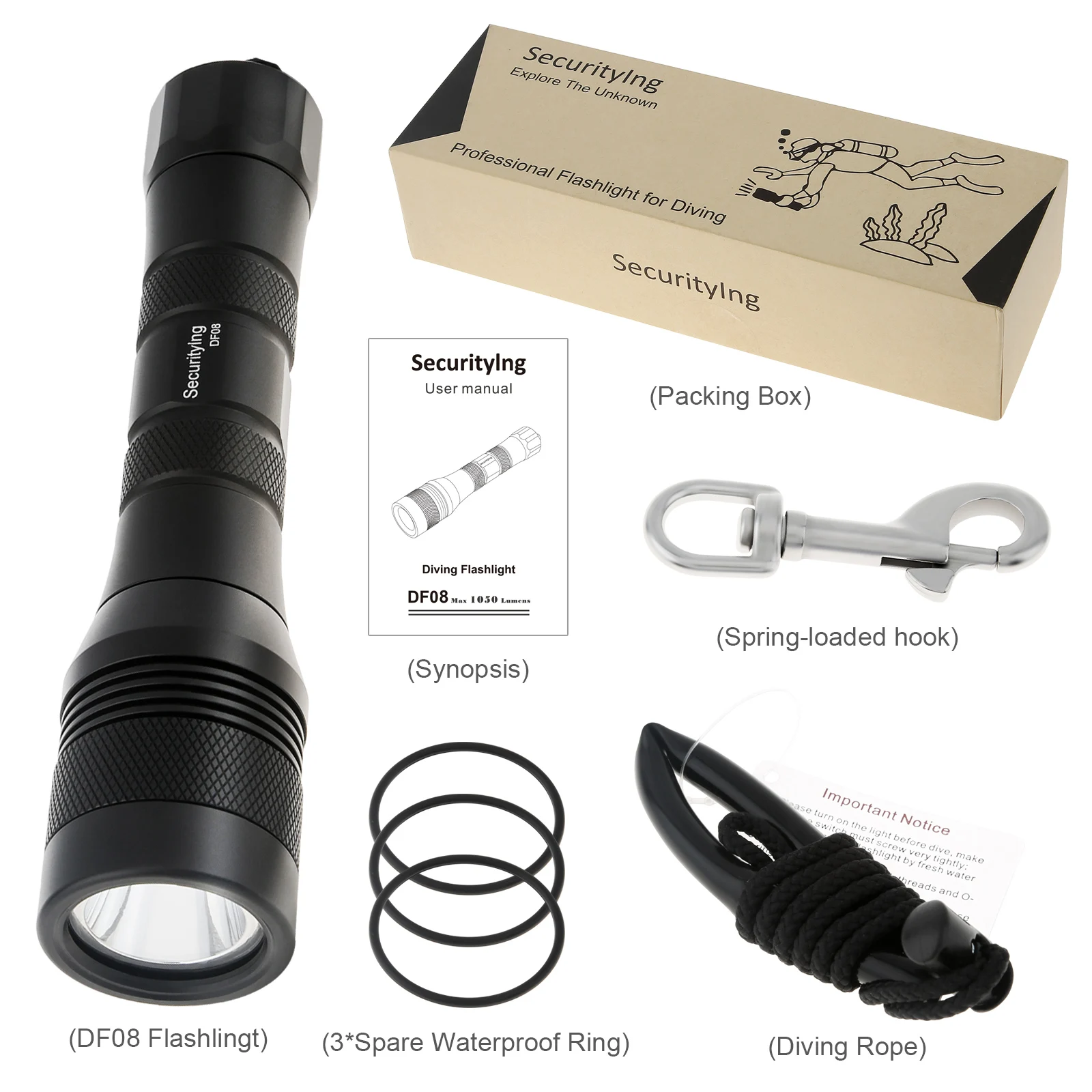 SecurityIng IPX8 Waterproof Scuba Diving Flashlight 1050 Lumen 150m Underwater 6500K Dive Flashlight with 9 Degree Beam Angle