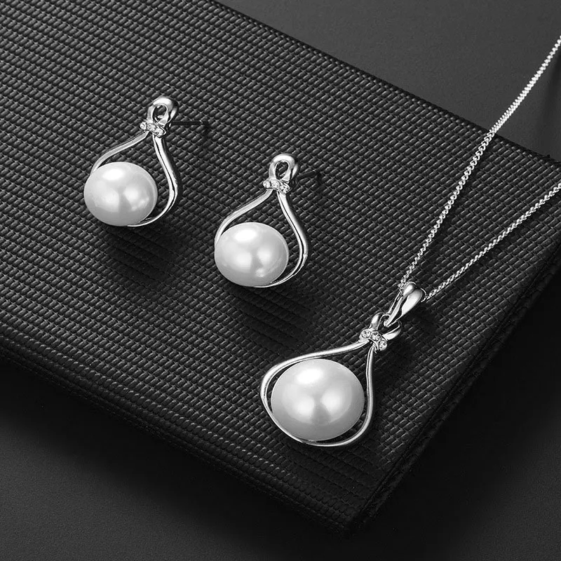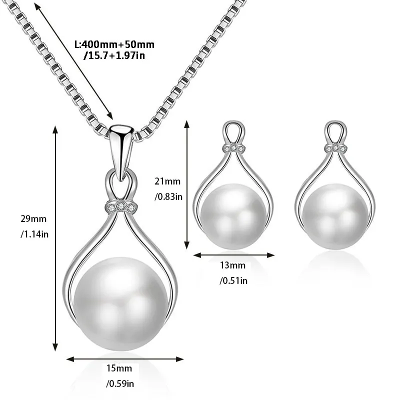 Simple Faux Pearls Jewelry Set With Pendant Necklace & Drop Earrings Elegant Jewelry Set For Women & Girls