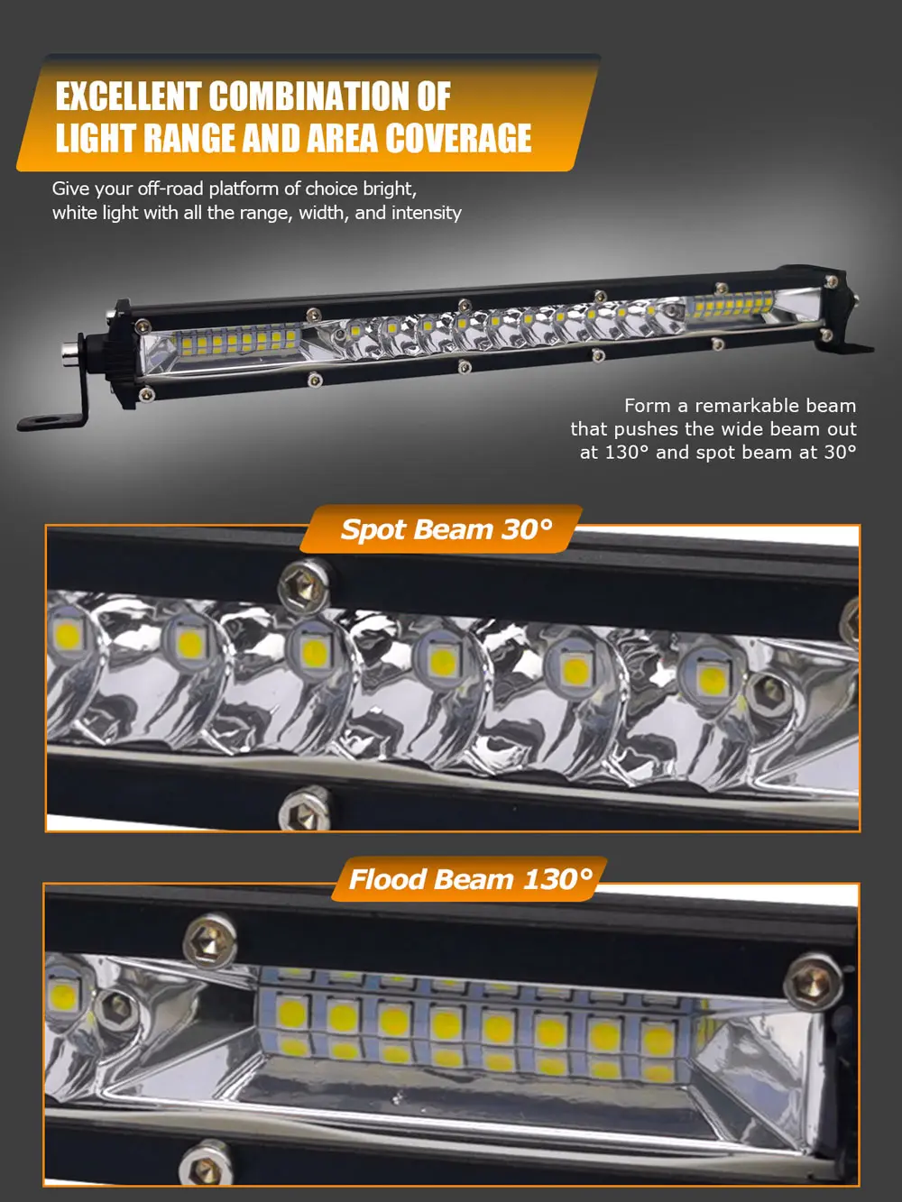 11 – 21 inch combo beam, 130° flood beam + 30° spot beam