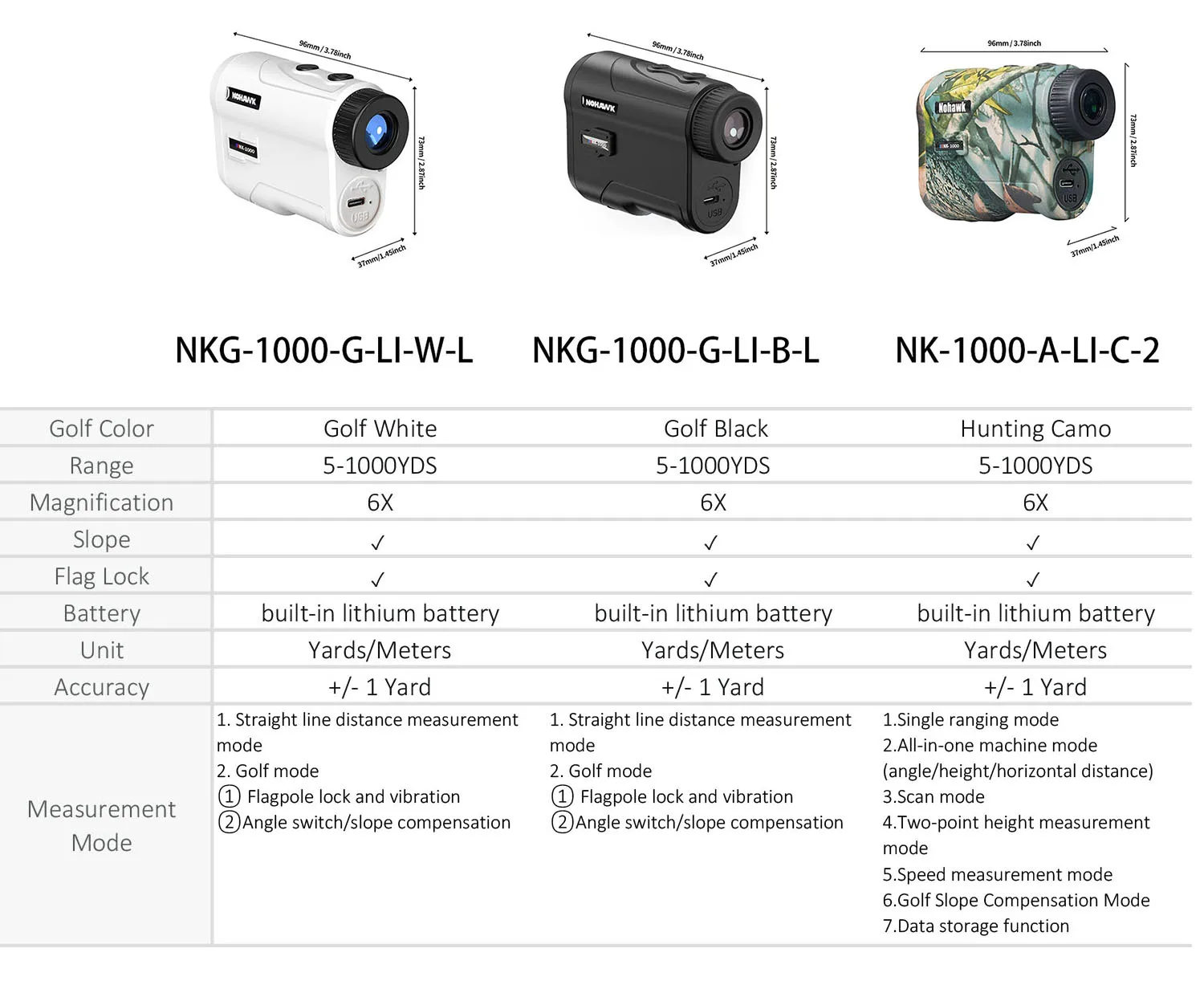 A excellent rangefinder that provides you external angle switch, golf slope compensation (recommended hitting distance), flagpole lock and vibration functions. Also featured with 1000 yards range, ±1 yard accuracy, 0.5S quick measurement, built in type-c charging port Lithium battery.