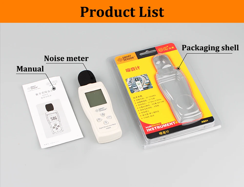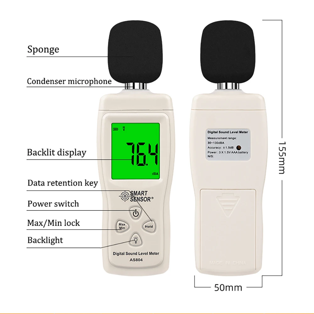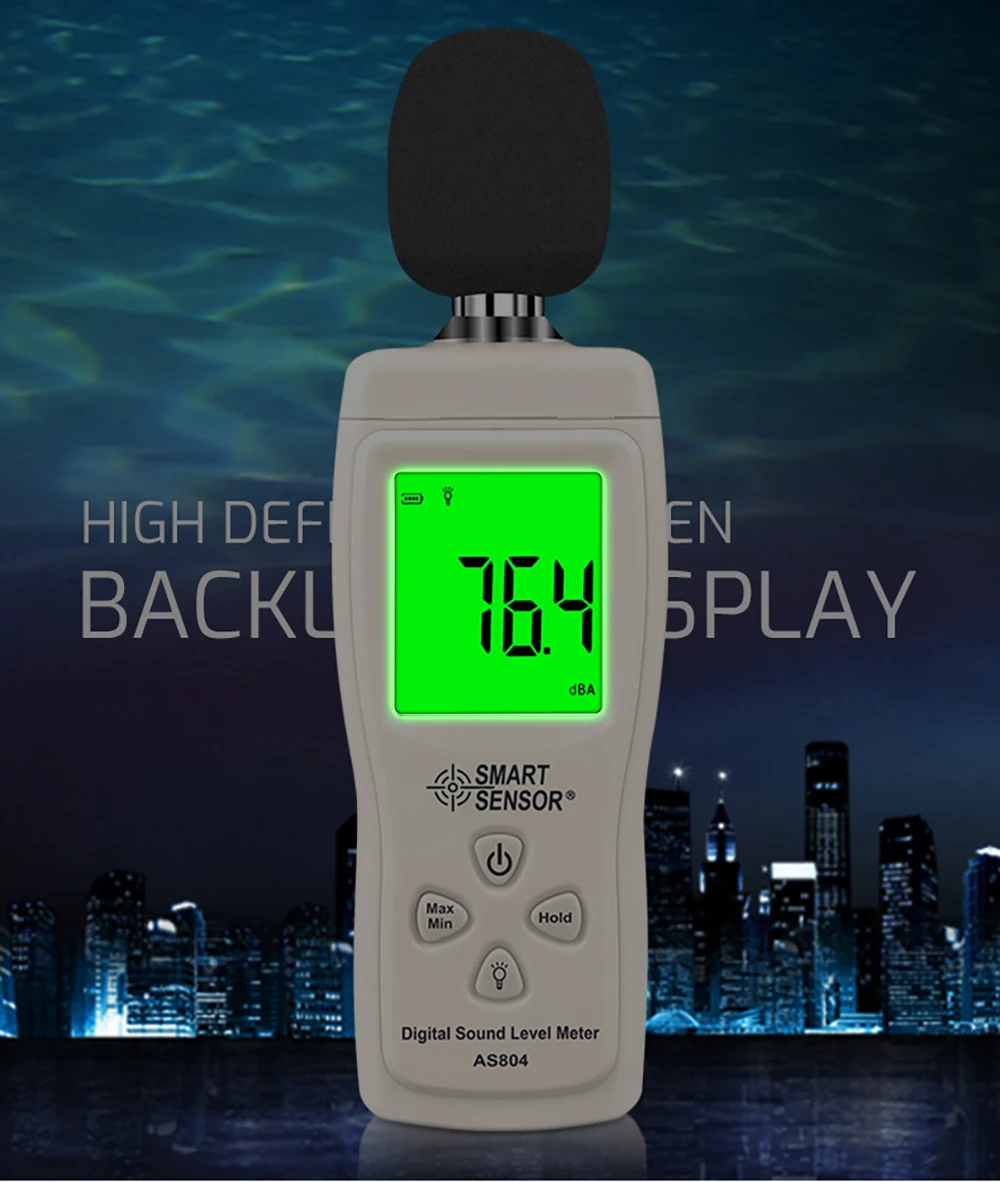Smart Sensor AS804 Digital Sound Level Meter Decibel 30d-130dB Diagnostic-tool Monitoring Tester Noise DB Detector Analyzer