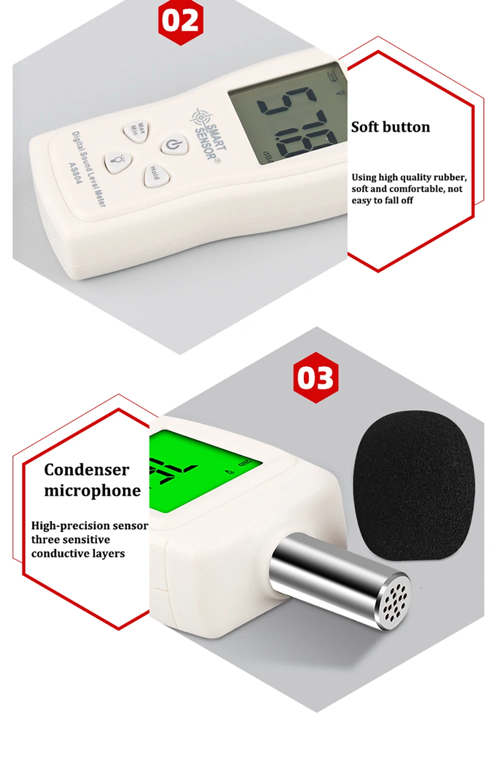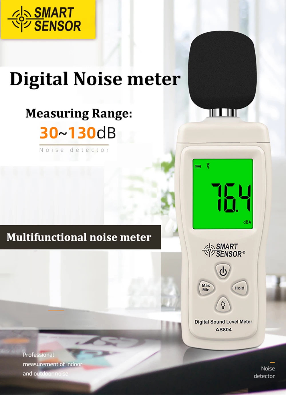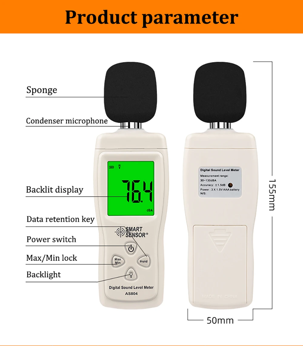 Smart Sensor AS804 Digital Sound Level Meter Decibel 30d-130dB Diagnostic-tool Monitoring Tester Noise DB Detector Analyzer