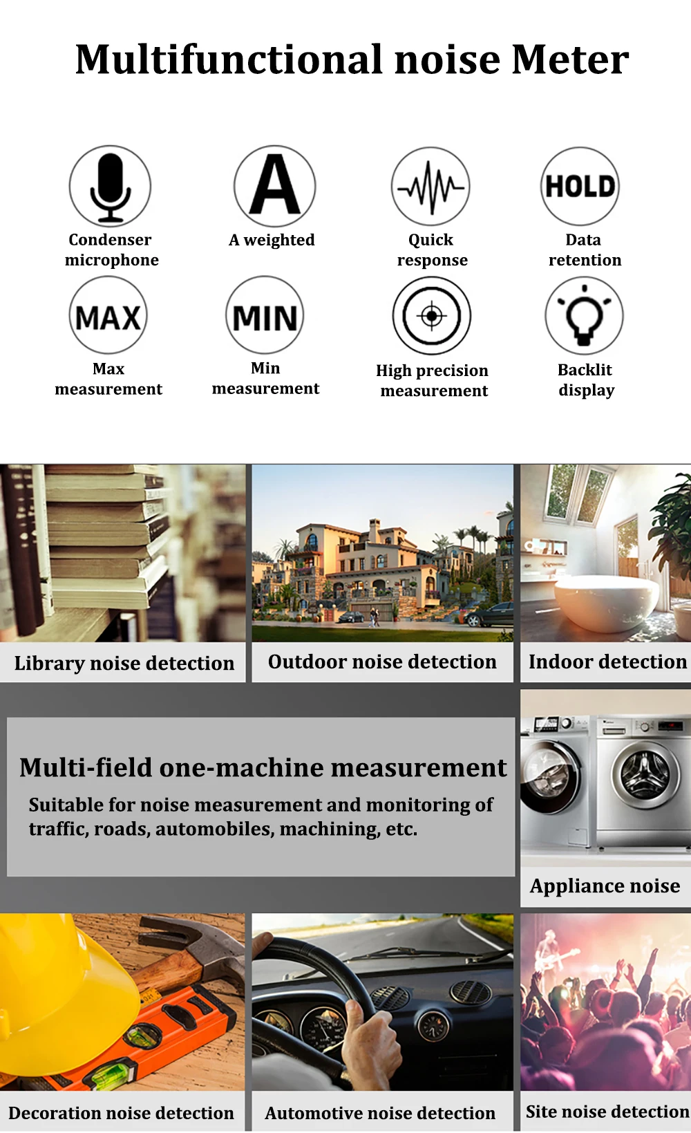 Be the first to review “Smart Sensor AS804 Digital Sound Level Meter Decibel 30d-130dB Diagnostic-tool Monitoring Tester Noise DB Detector Analyzer”