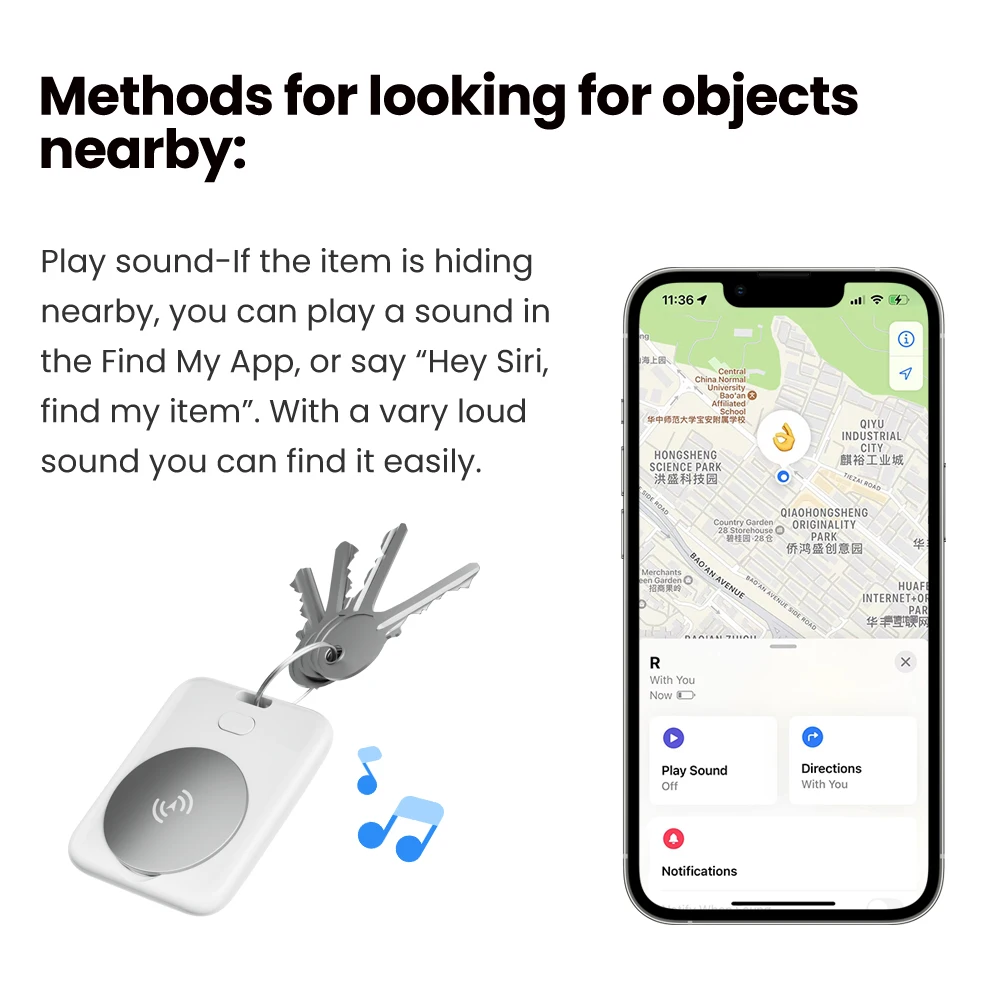If the item is within the Bluetooth search range, you can use the “Find My” application to have the anti-lost device play a sound to help find the lost item.