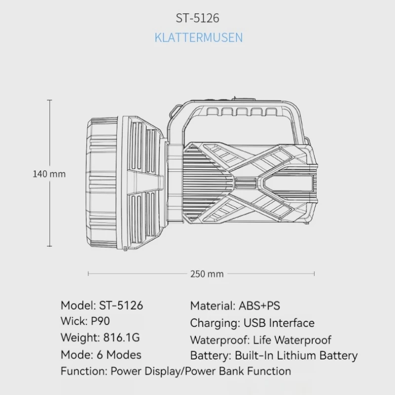 【Rechargeable Battery】: The light is equipped with a built-in rechargeable lithium battery that can be charged via USB. This ensures hours of continuous use between charges and even acts as an emergency power bank to charge your phone.