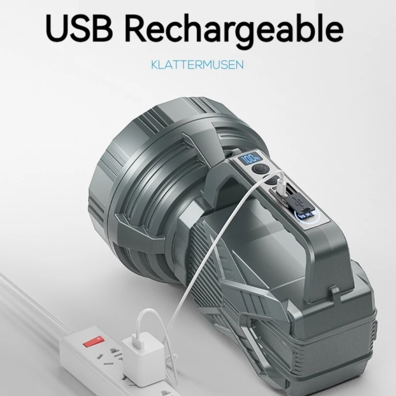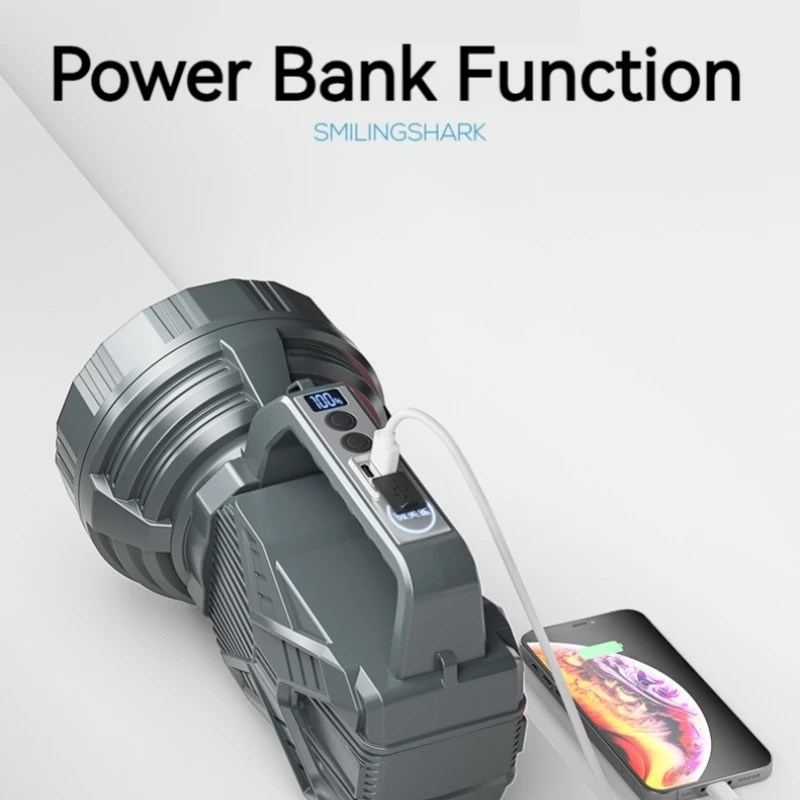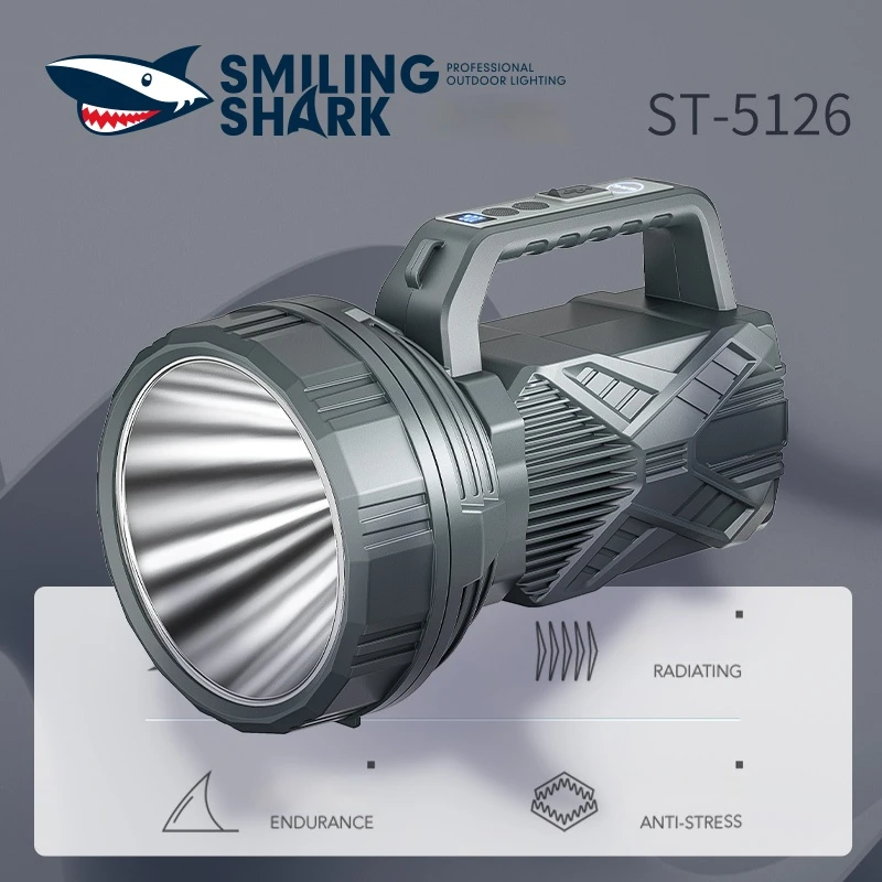 Smiing Shark ST5126 Portable USB Rechargeable Flashlight, Handheld Searchlight, with Power Display, for Camping & Emergency