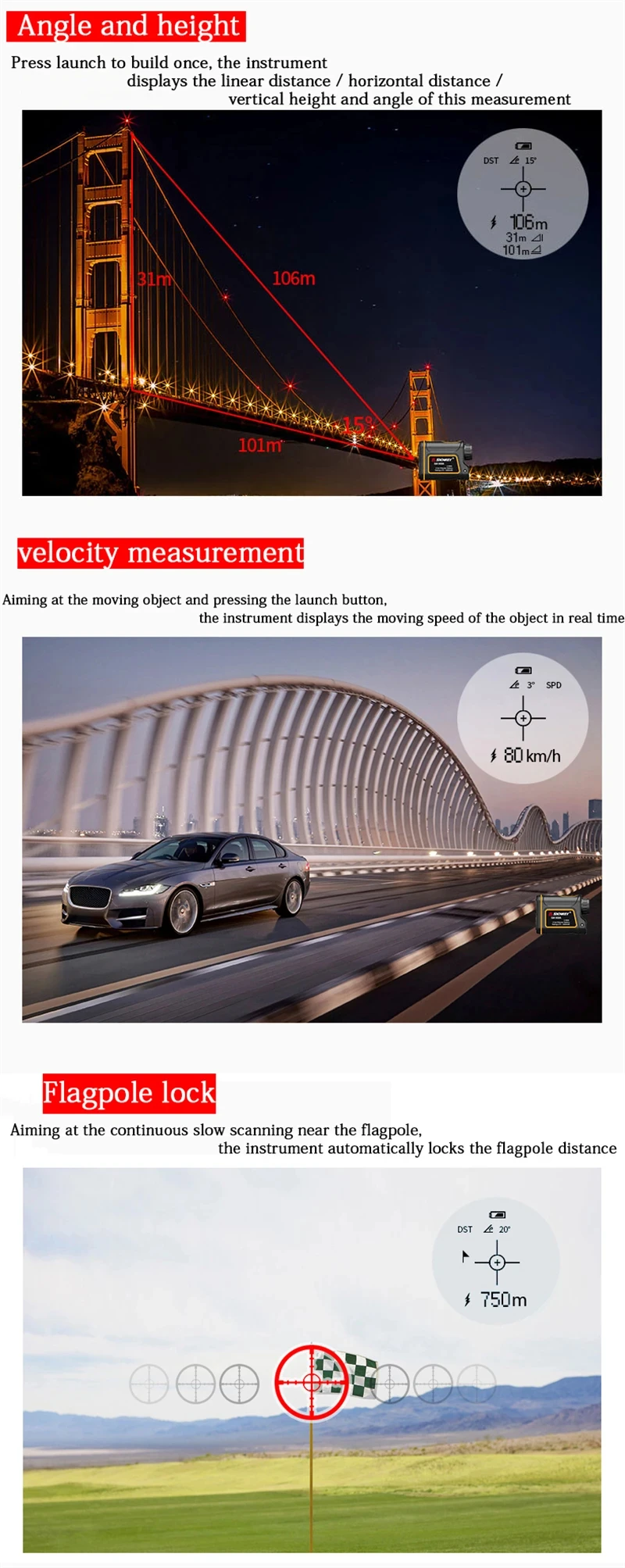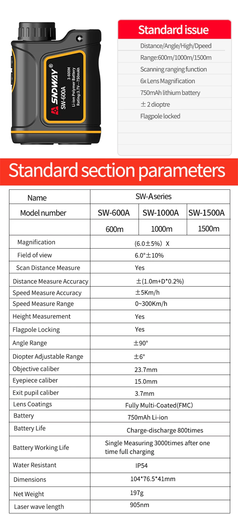 SNDWAY 600M 1000M 1500M Range Finder Telemeters Golf Rangefinder Distance Meter Professional Angle High Speed Continuous Measure