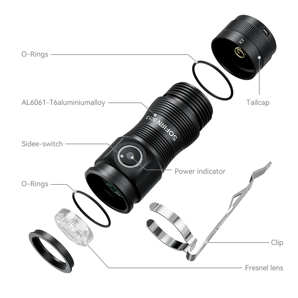 with battery kit: 1* flashlight, 2* Replace Orings,1*18350 battery,1*USB charger, 1*lanyard