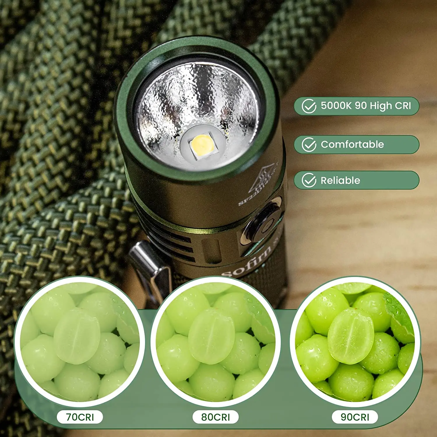 4, Comfortable Light Beam: 5000K LH351D LED used, the little yellowish light beam reflexes your eyes in darkness