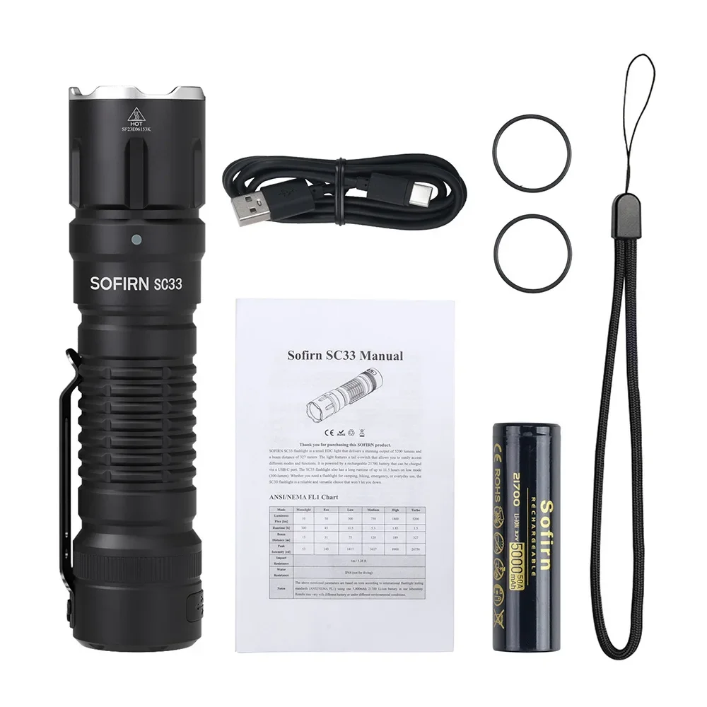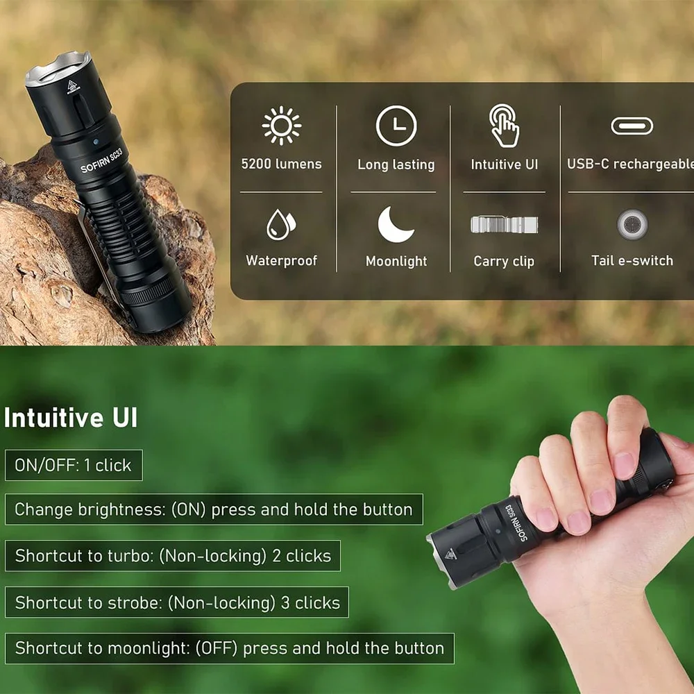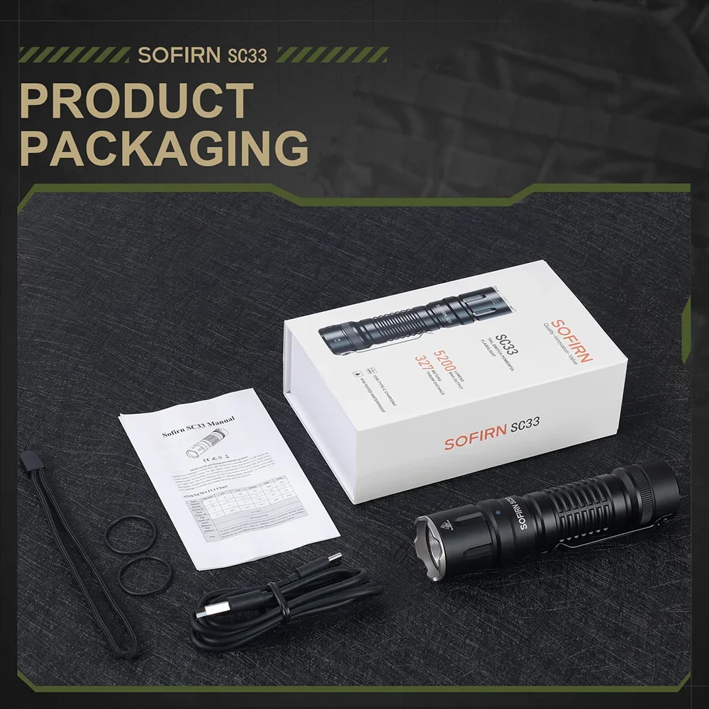 SOFIRN SC33 ultra bright flashlight,5200LM 327 Meters