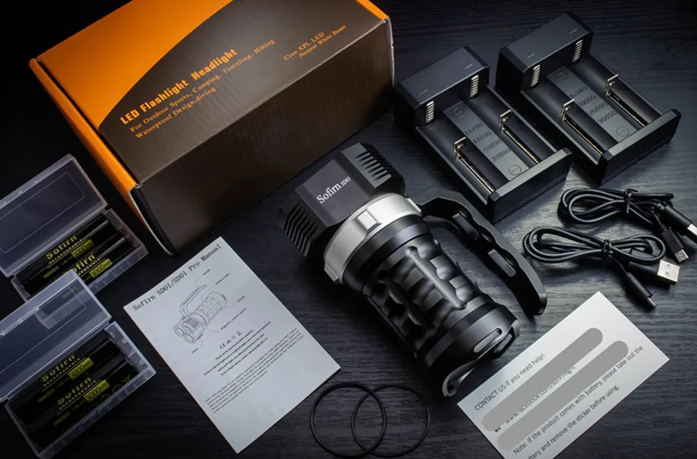 2.with batteries kit:come with 1 flashlight, 2 replace orings, 4 *18650 battereis,2* USB charger