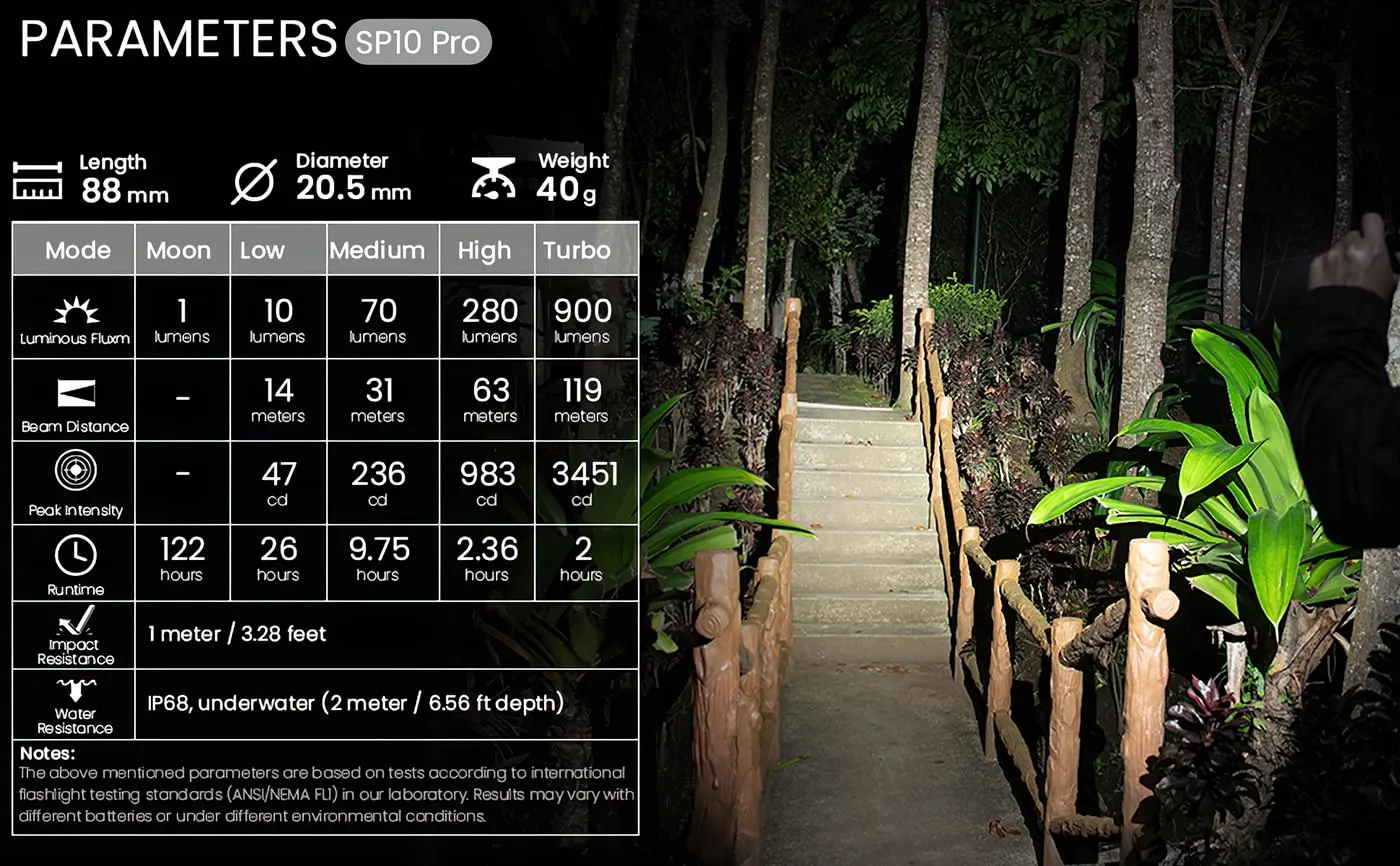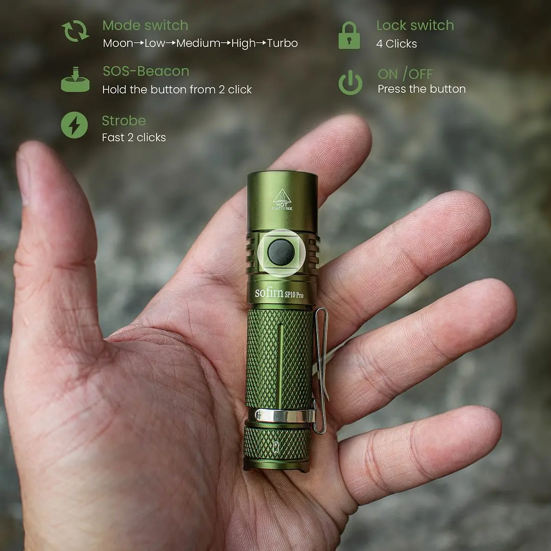 Operating voltage: 3.0V – 4.2V (14500 battery) / 1.0V – 1.60V (AA alkaline or NiMH battery)