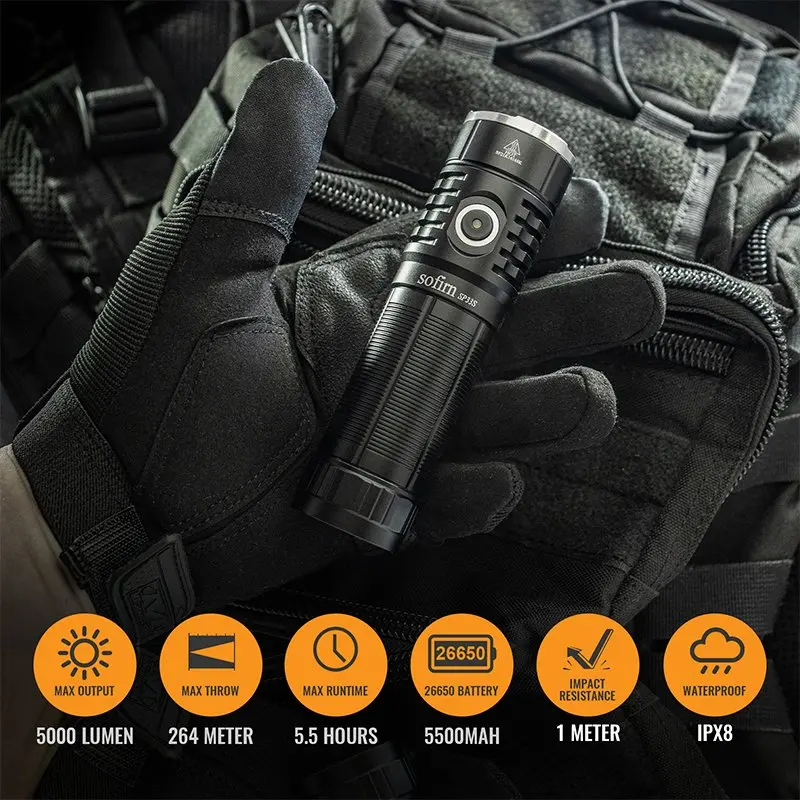 SP33S is a upgrade version from SP33V3, it update to 5000lm output and Type C rechargeable port.It is a powerful, versatile EDC / outdoor flashlight designed for home, EDC or outdoor activities like camping, hiking, fishing or hunting. It can be operated from a single 26650/21700 Li-ion rechargeable battery.