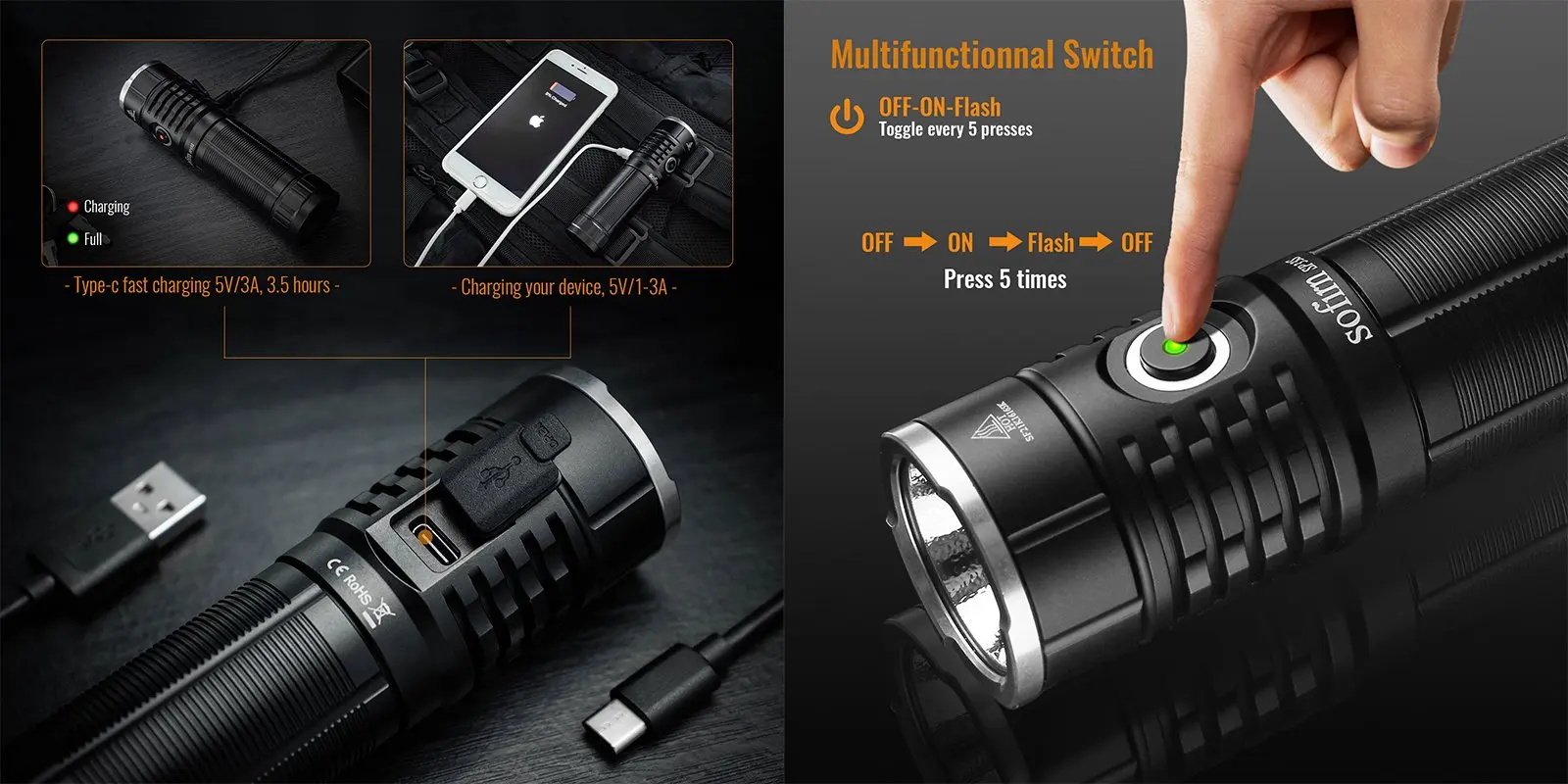 ※ Sofirn SP33S uses CREE XHP70B LED with a lifespan of 50,000 hours