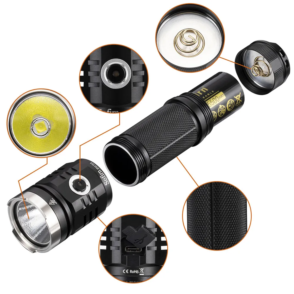 SP33 V3.0 It is a powerful and versatile EDC / Outdoor Flashlight, the SOFIRN SP33 V3 has a maximum output of 3500 lumens, a maximum range of 269 meters (294 yards) and a micro USB charging port. Designed for home, EDC or outdoor activities such as camping, hiking, fishing or hunting. It can be powered by a single 26650/21700/18650 Li-ion rechargeable battery.
