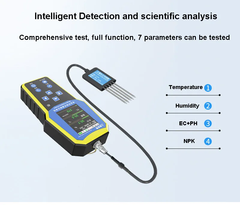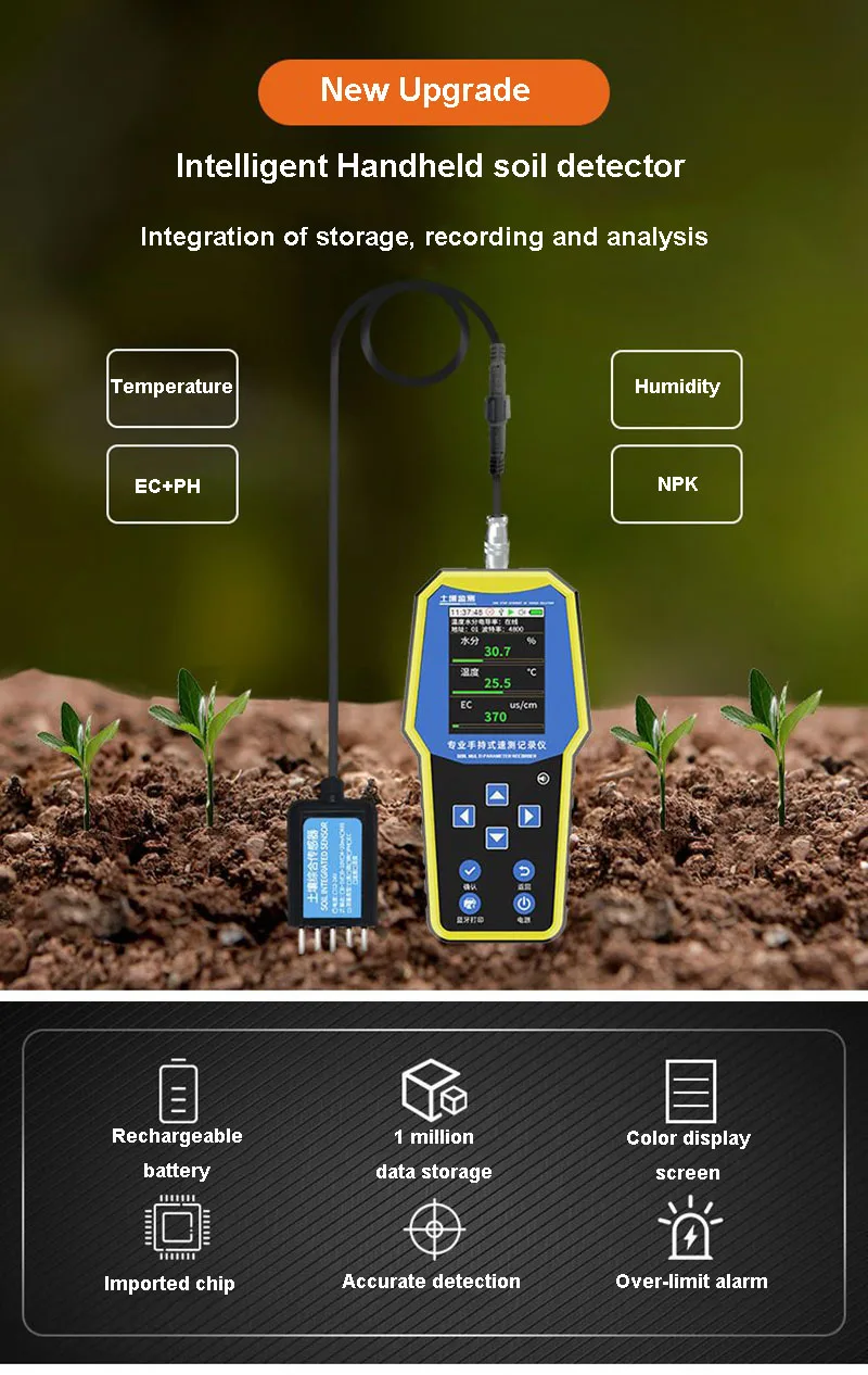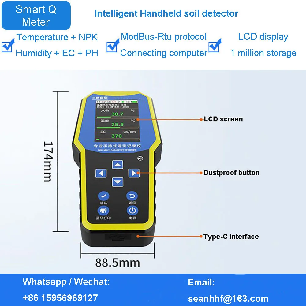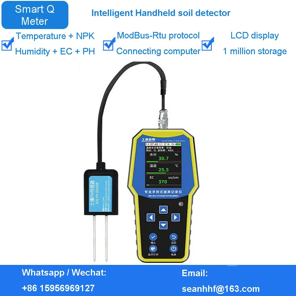 Soil Nitrogen Phosphorus potassium ph temperature and humidity water sensor EC fertility nutrient detector data can be exported