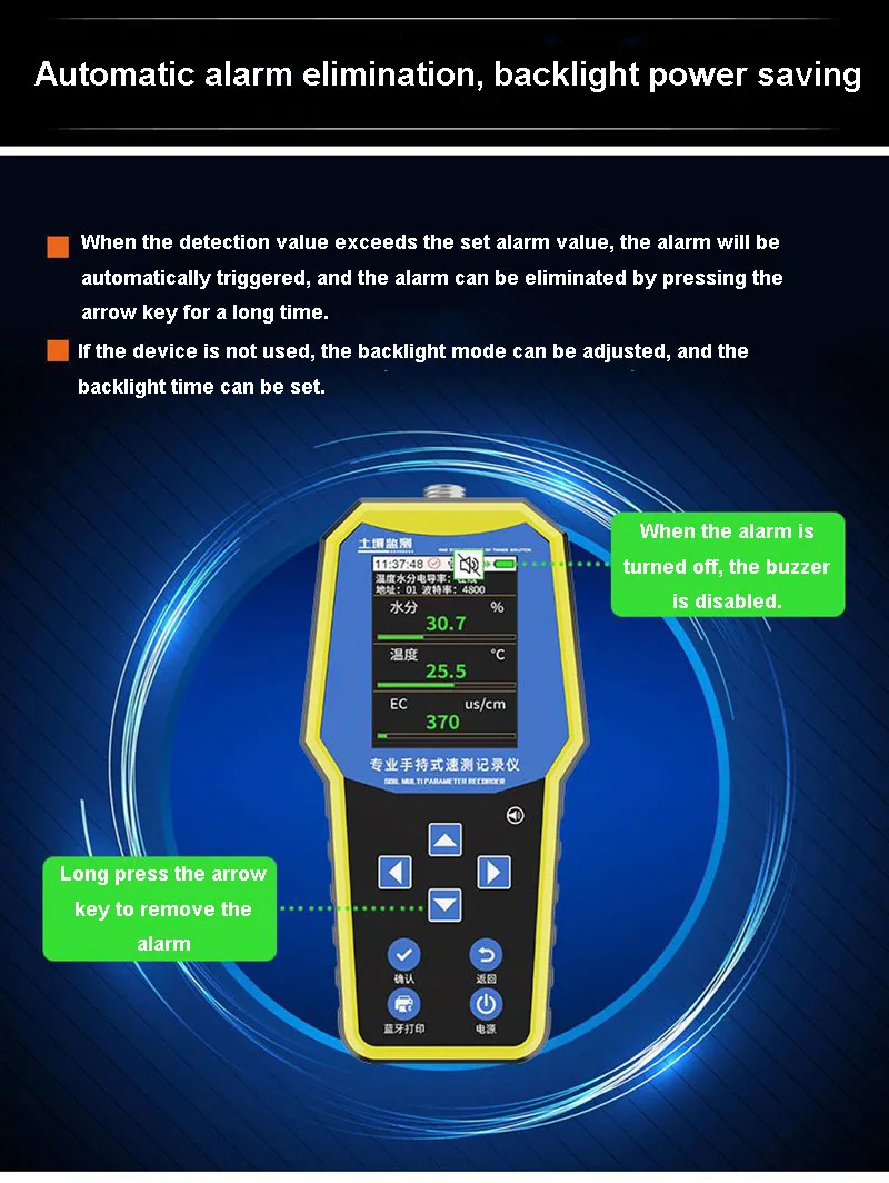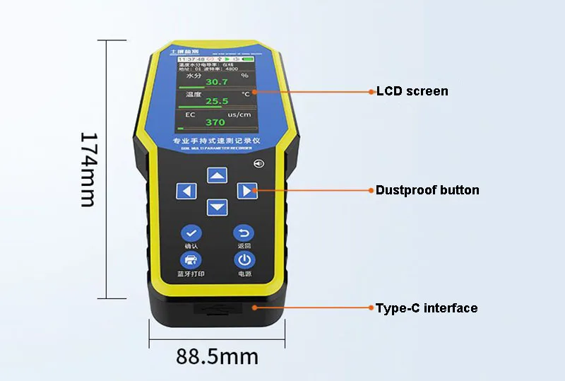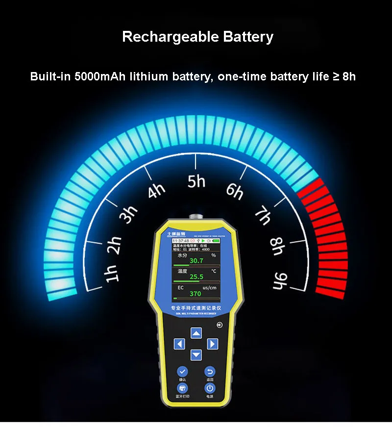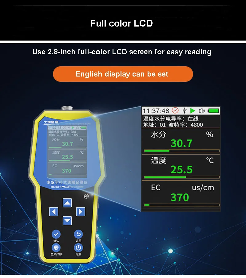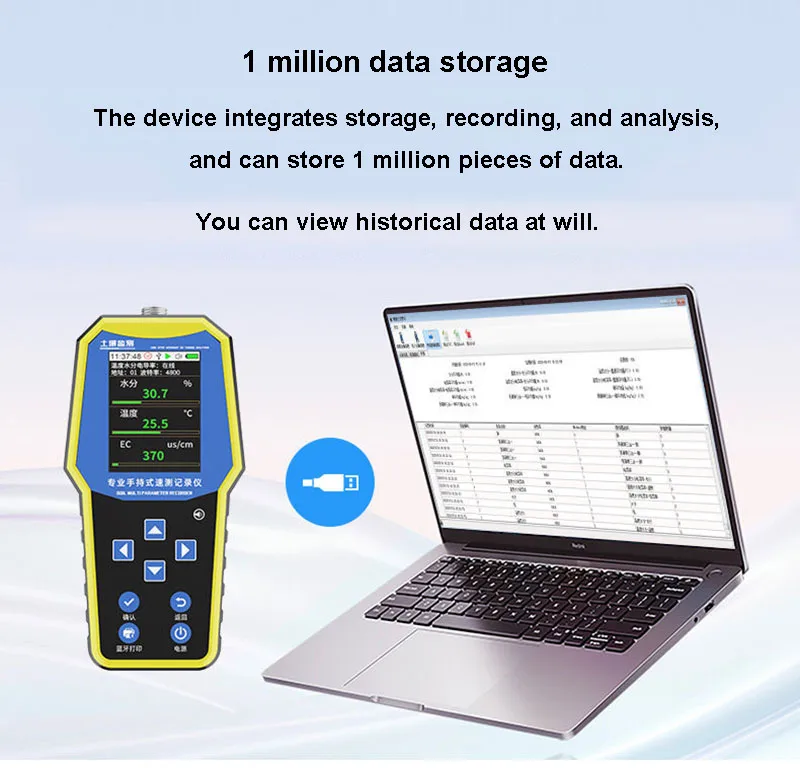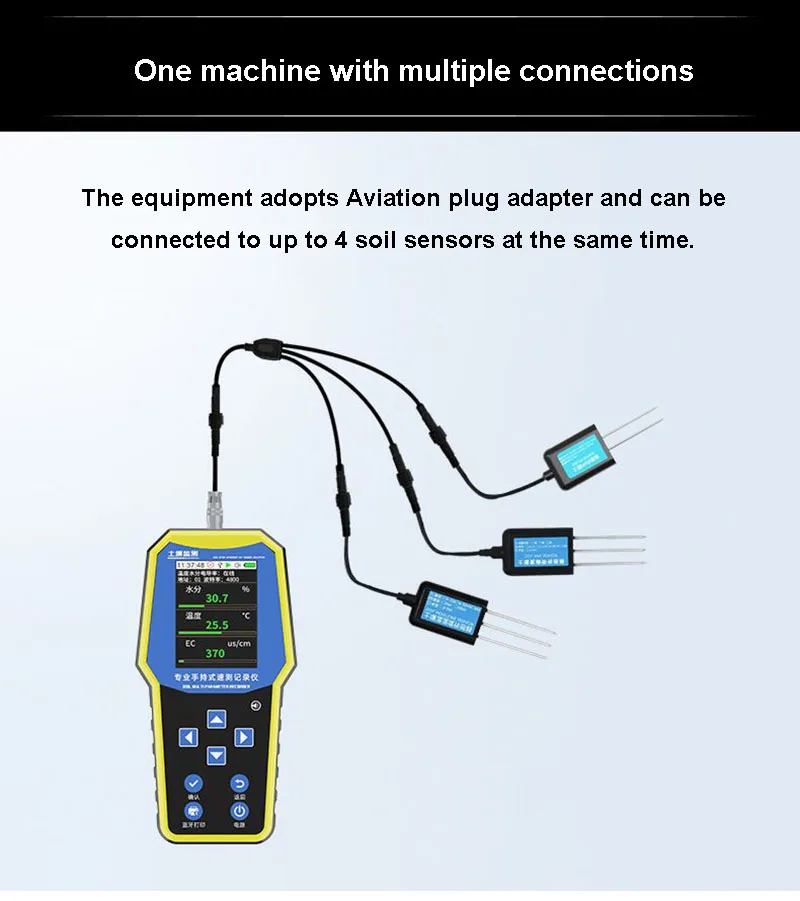 Soil Nitrogen Phosphorus potassium ph temperature and humidity water sensor EC fertility nutrient detector data can be exported