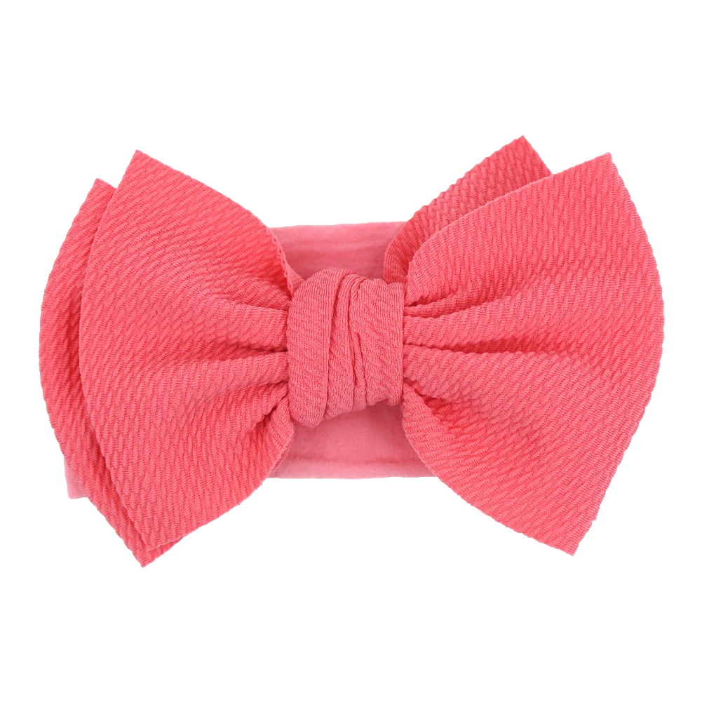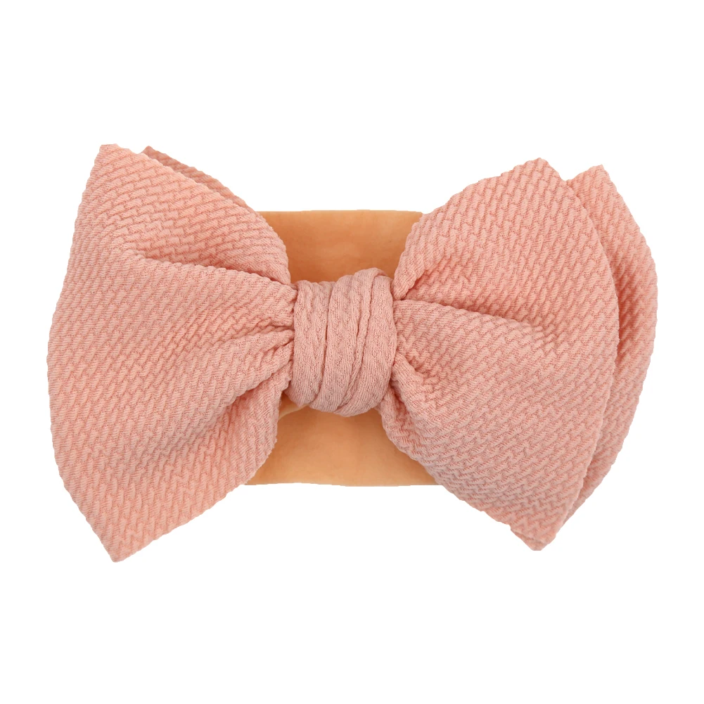 Solid Big Bow Topknot Headband for Baby Girls Elastic Nylon Hair Bands Handmade Newborn Fashion Turban Headwraps Accessories