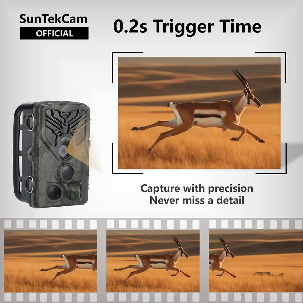 ultra-fast 0.2s trigger time, expertly designed to recognize and capture animals swiftly, ensuring no moment is missed.
