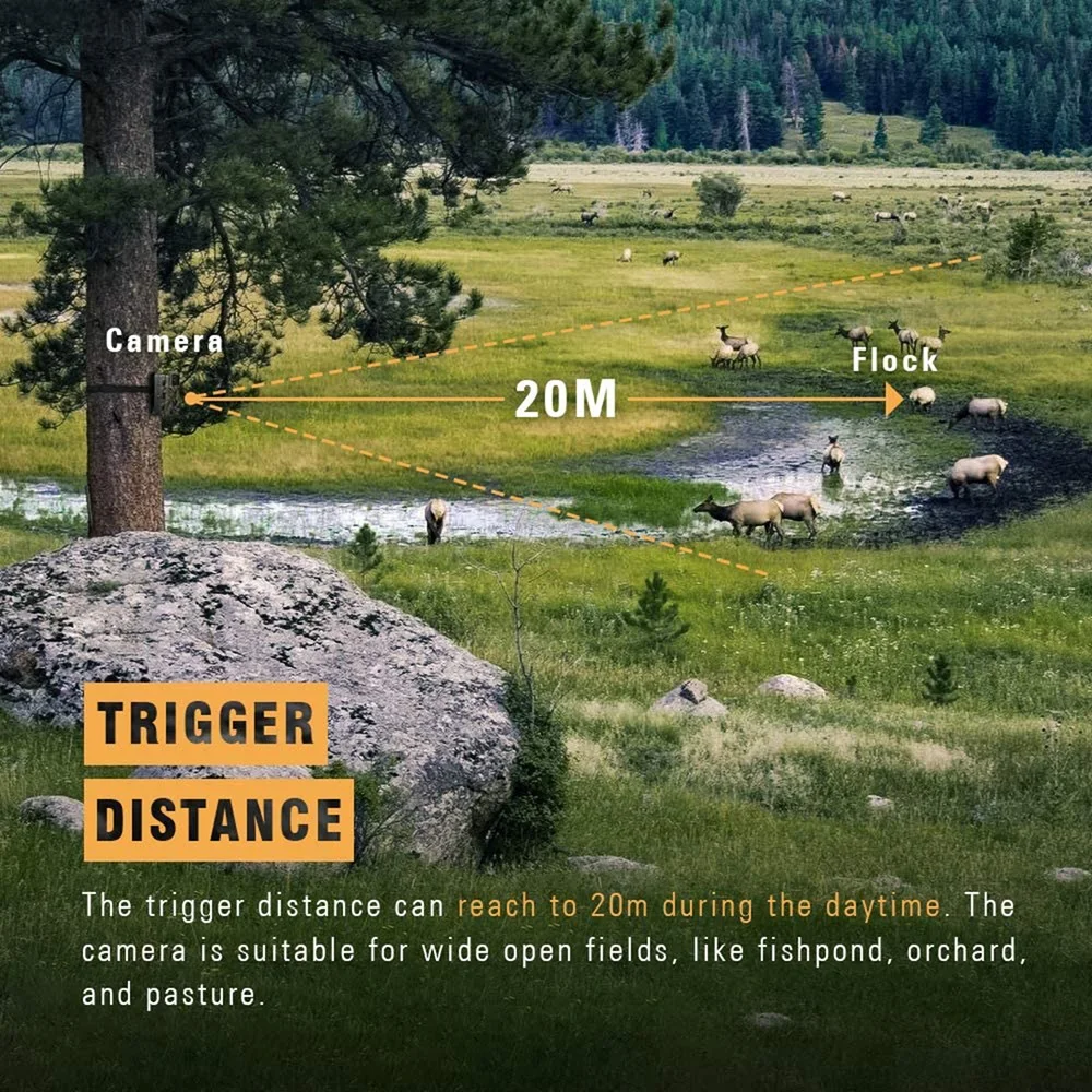 Maximize your wildlife encounters with our camera's 20m/66ft trigger distance, consistently capturing more in every environment, day or night