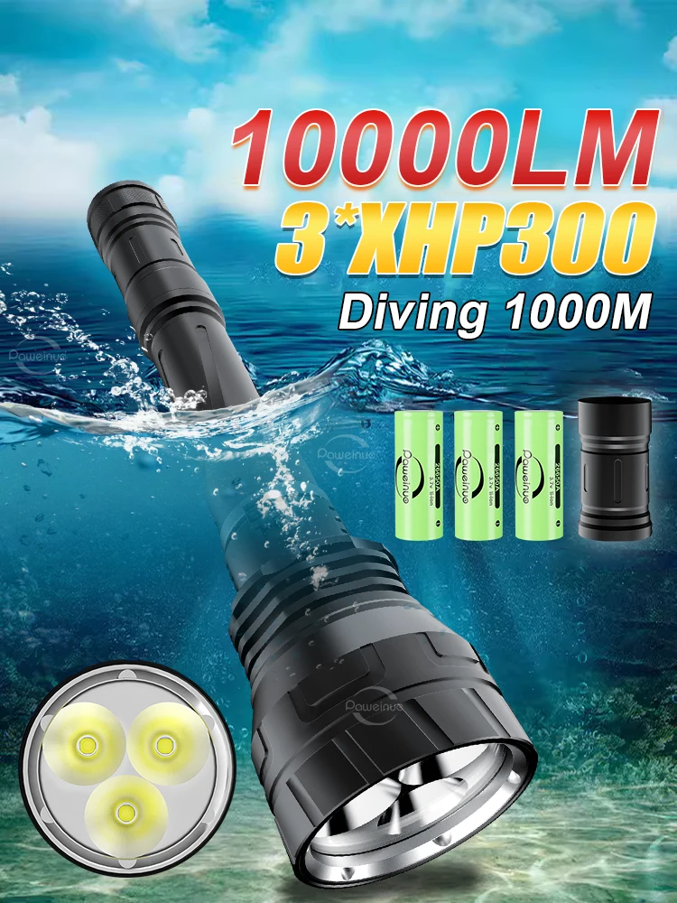 Upgraded 3*XHP300 super bright professional diving flashlight Diving 1000m