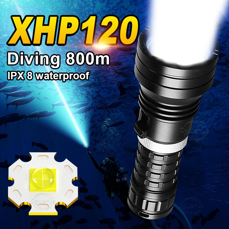 2. Super Bright: Powerful XHP120 LED, 8000 lumens, neutral white light helps you see underwater targets clearly.